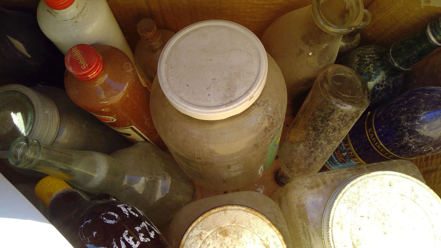 PALLET OF HOUSEWARE, BOTTLES, JARS, SOME SHOP ITEMS, ECT.