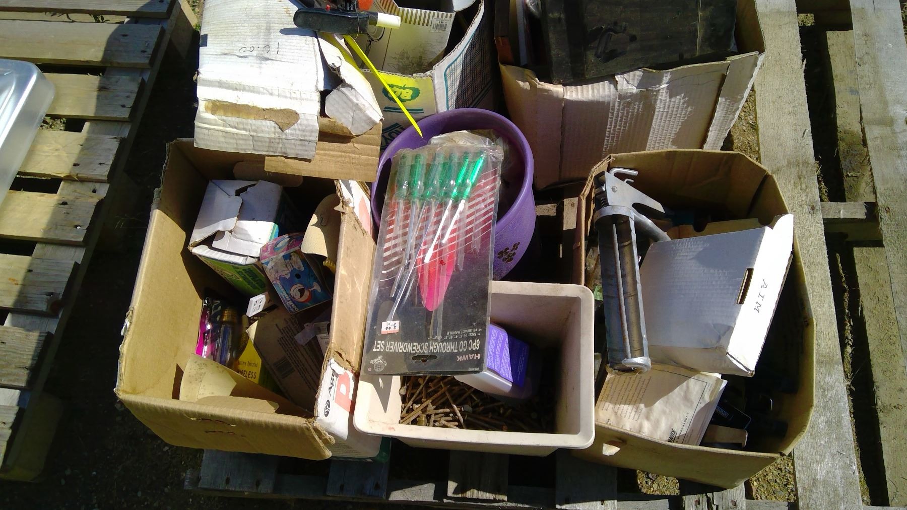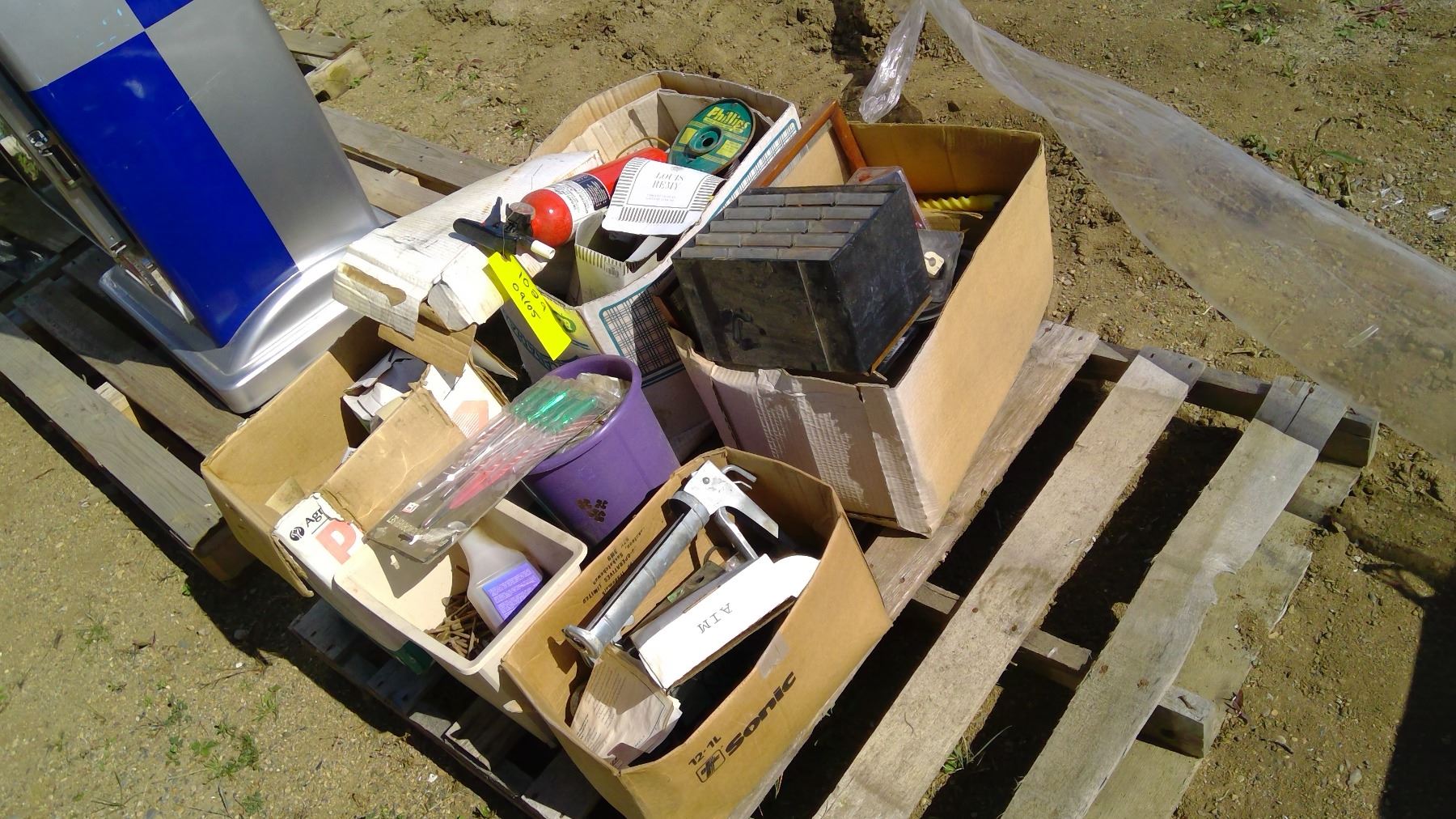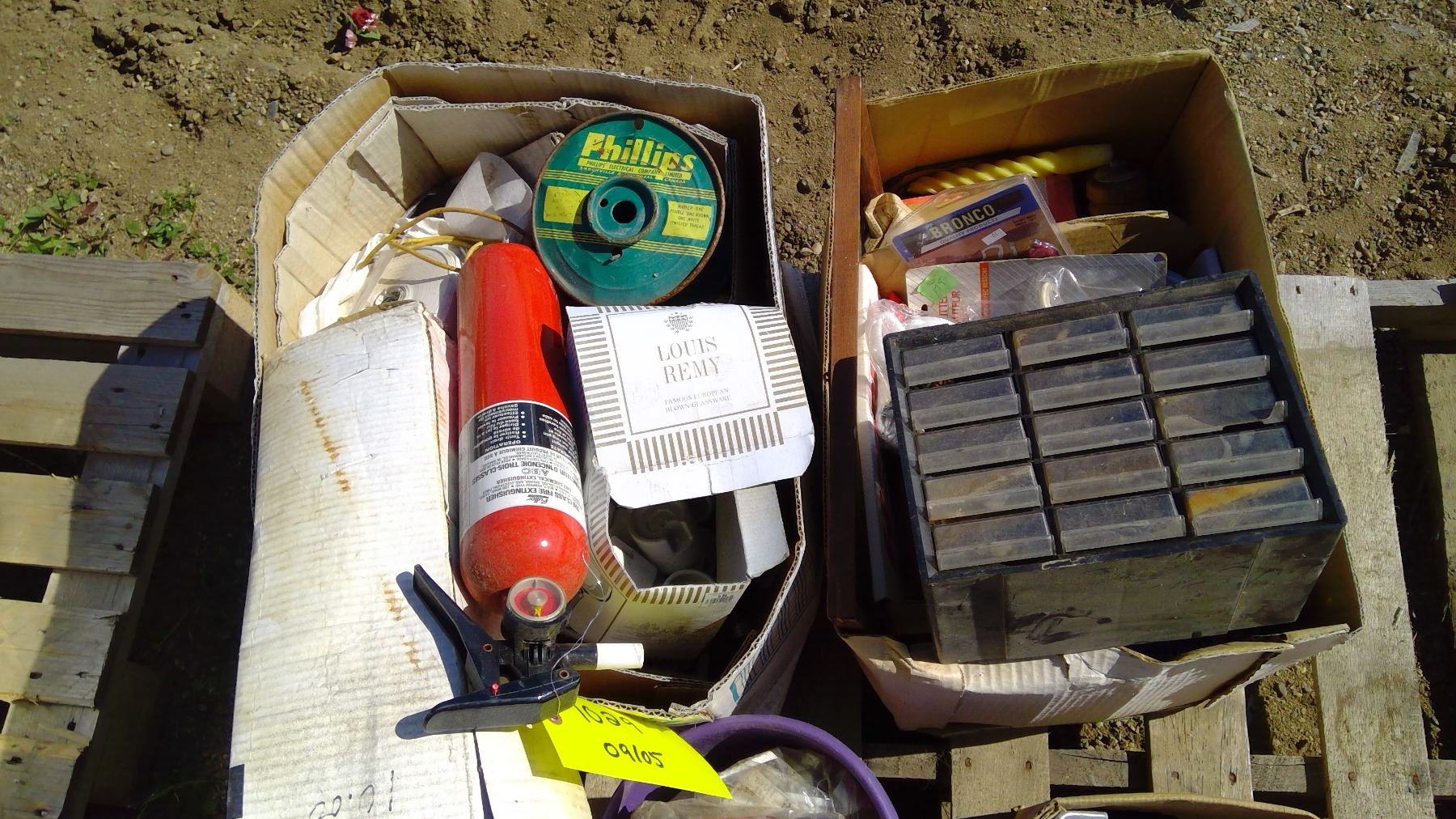 PALLET OF MISC TOOLS, NEW FIRE EXTINGUISHER, ECT.