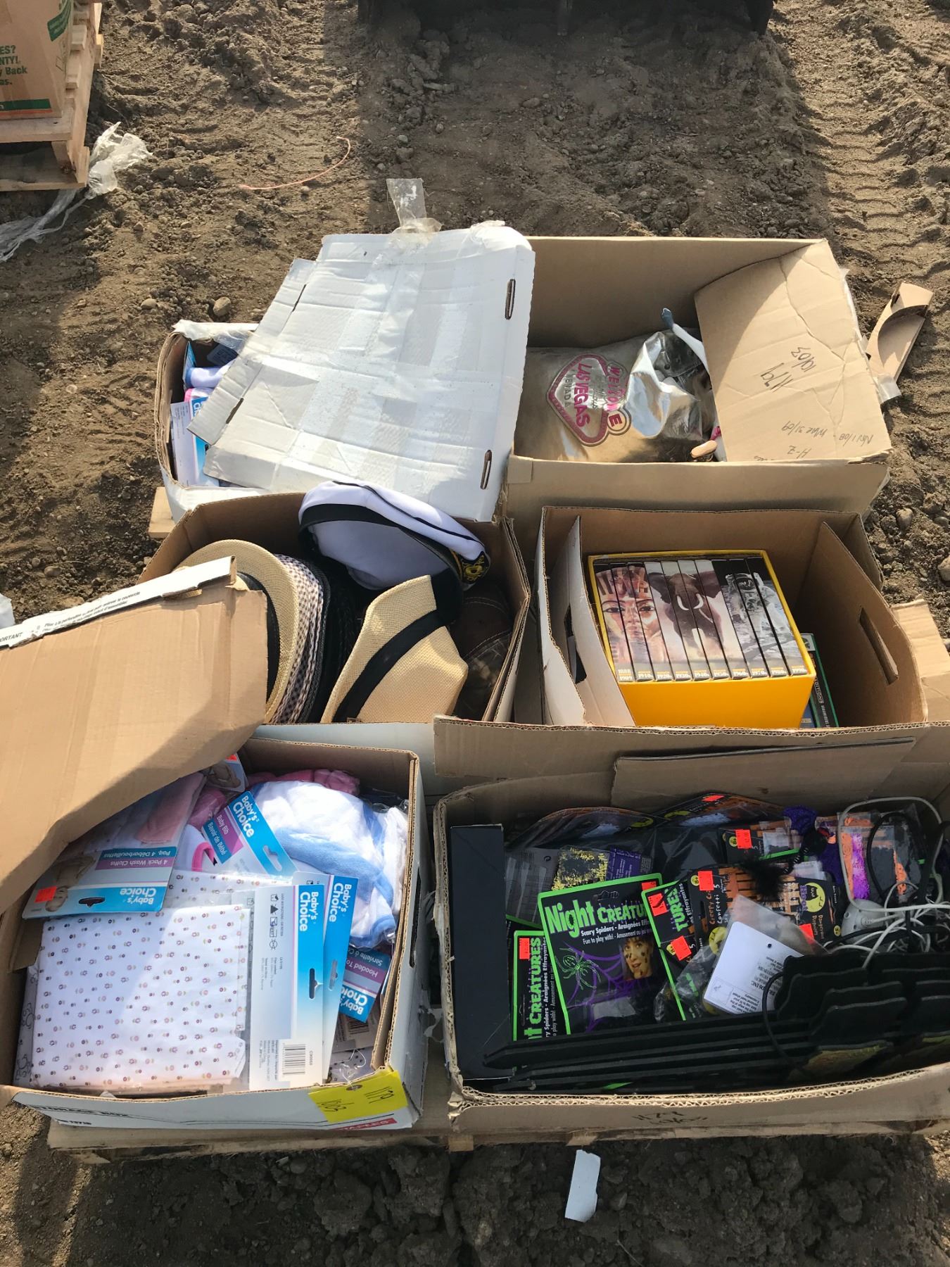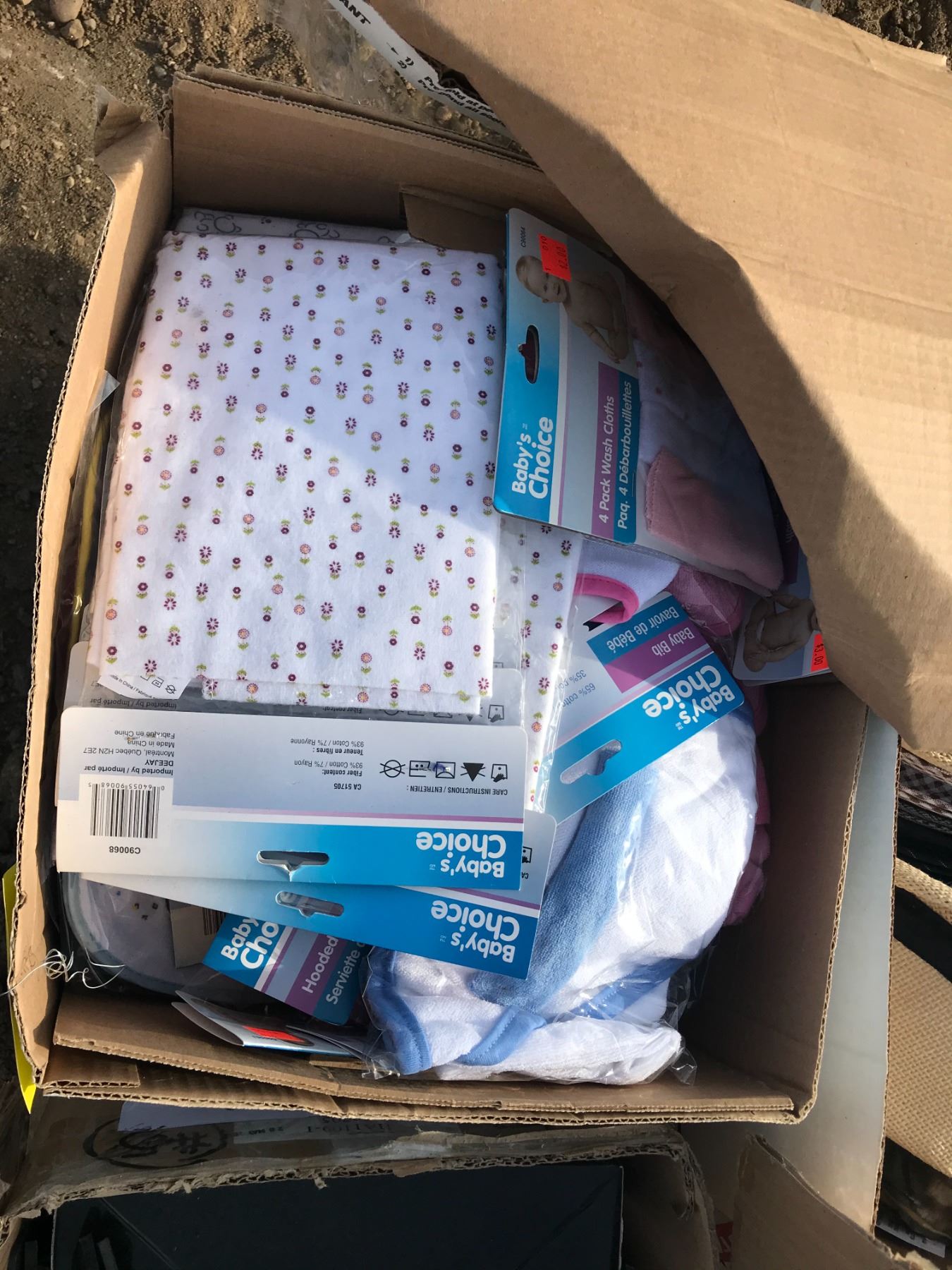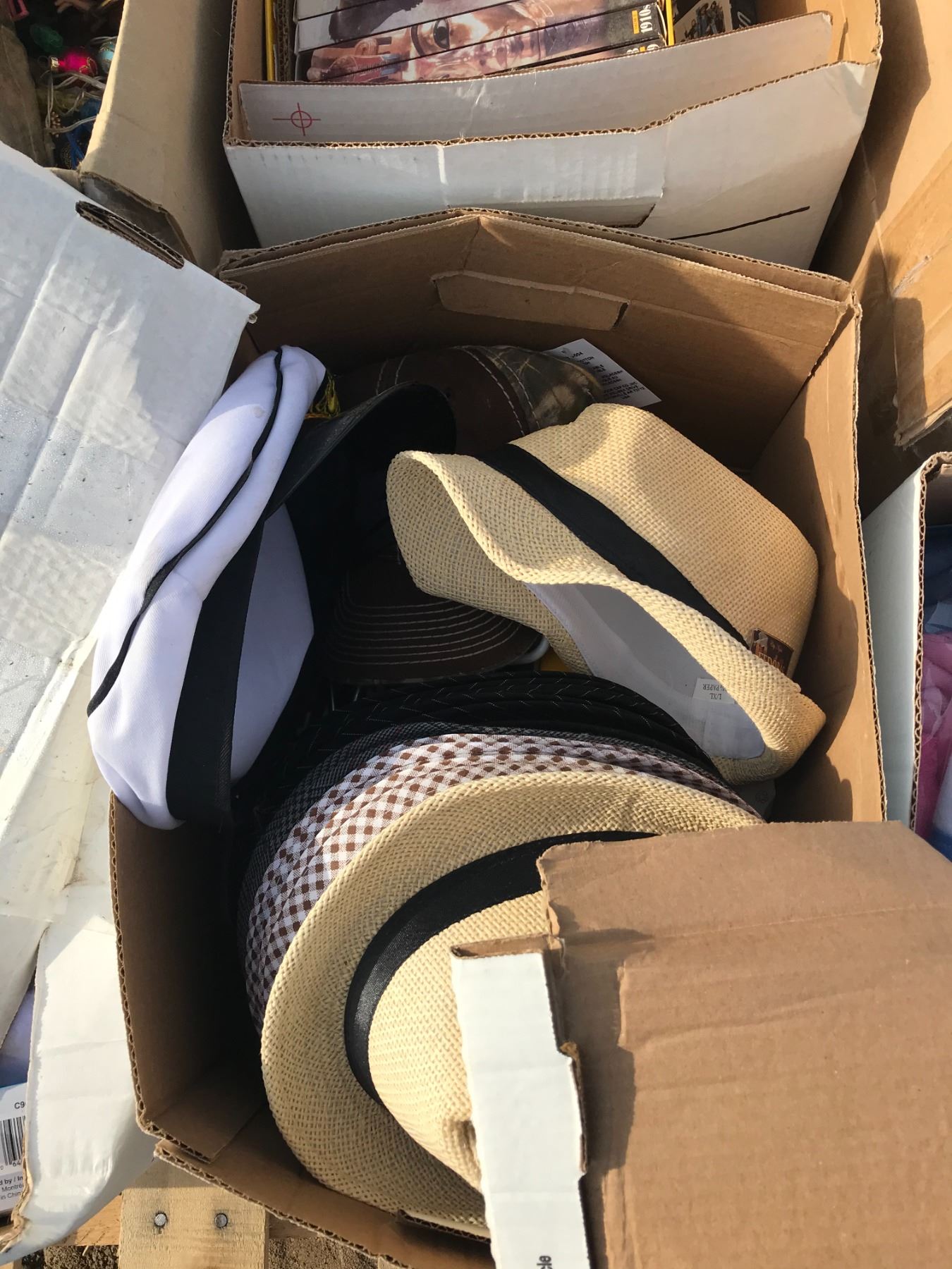 PALLET OF NEW HATS, BABY CLOTHES, VHS MOVIES, HALLOWEEN ITEMS, ETC