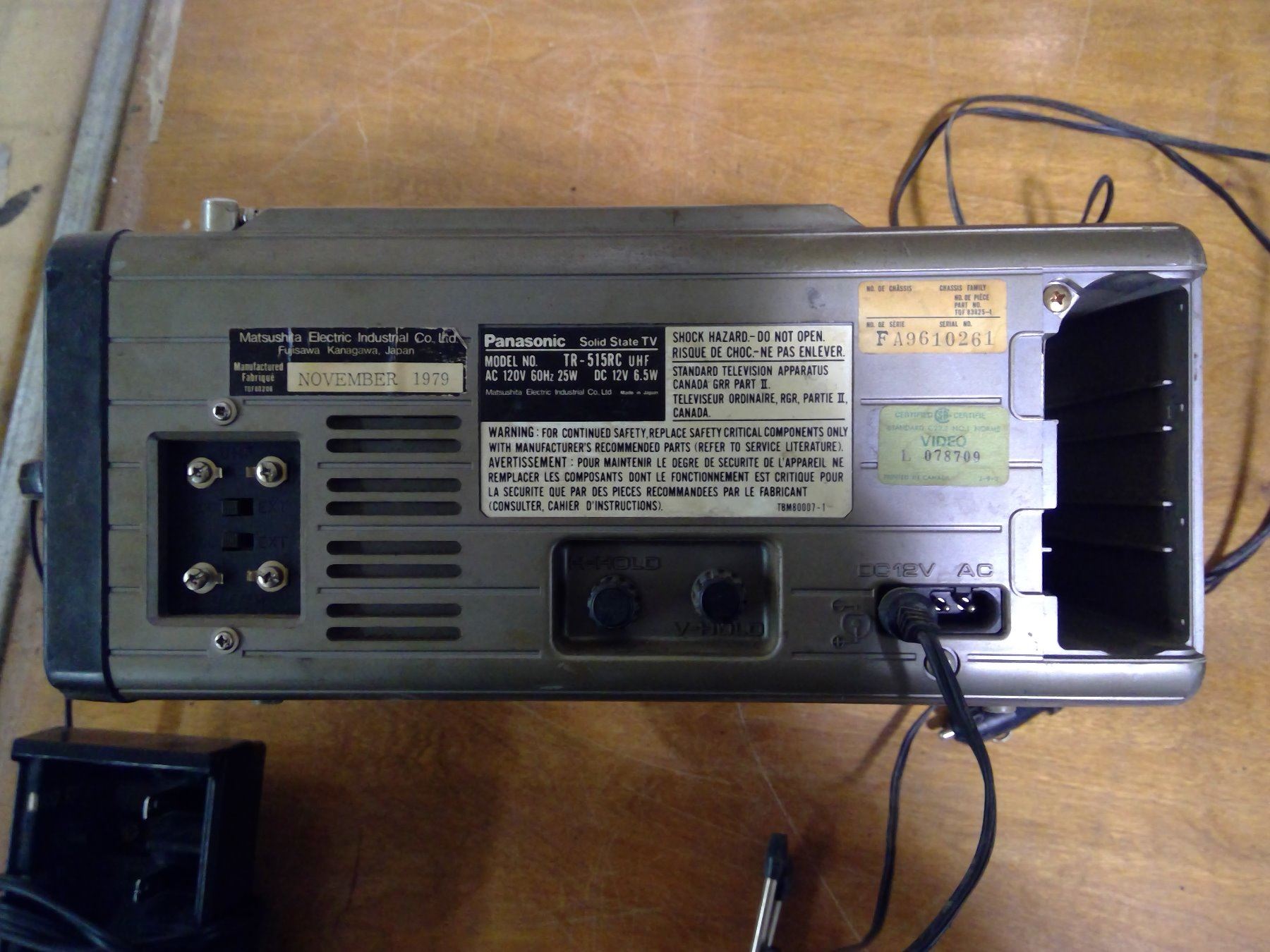 PANASONIC SOLID STATE TV + BATTERY CHARGER
