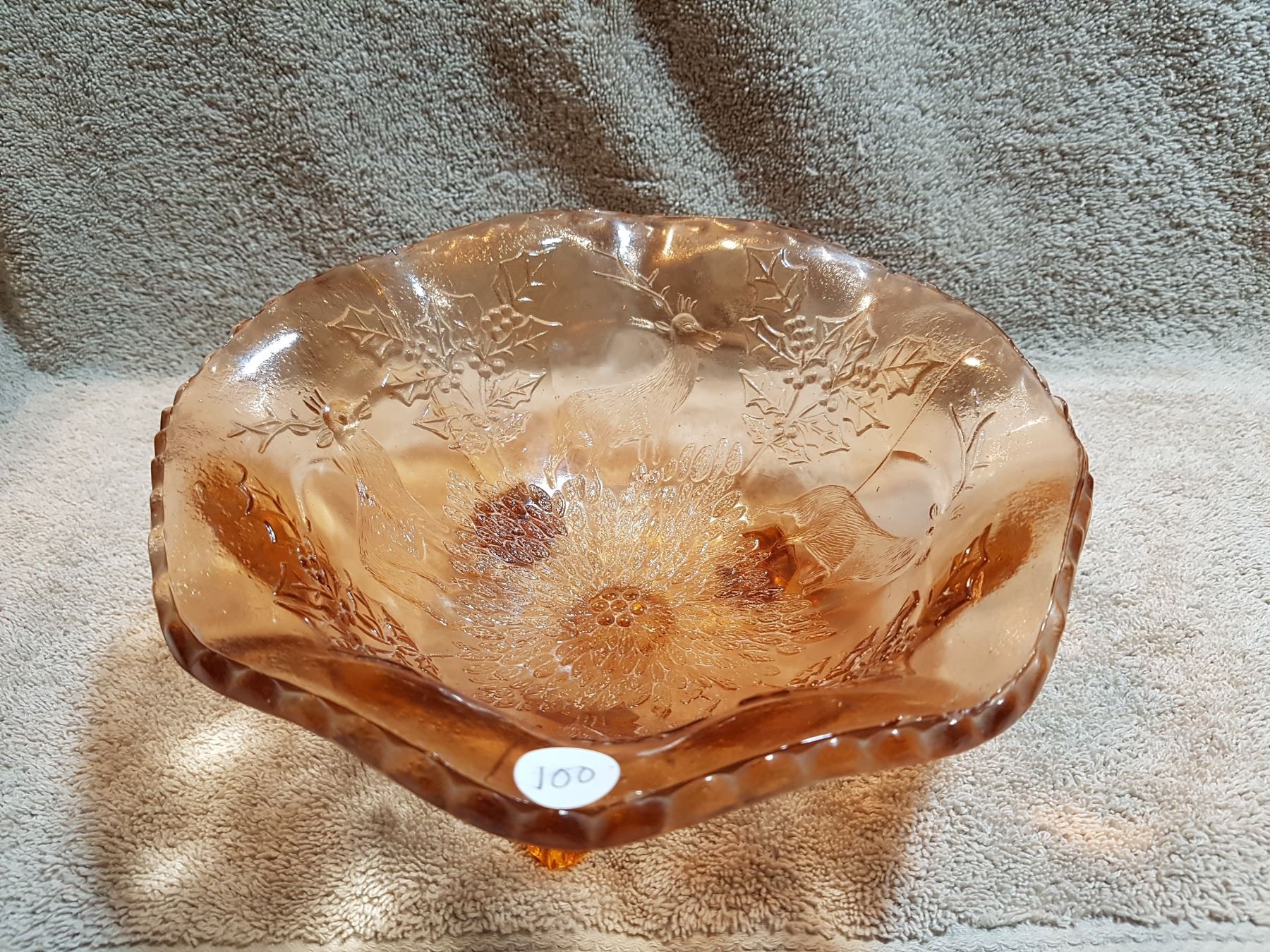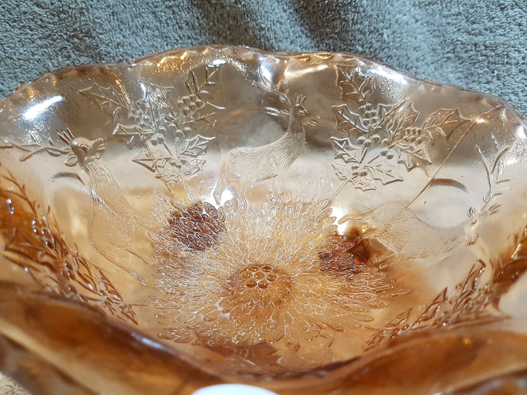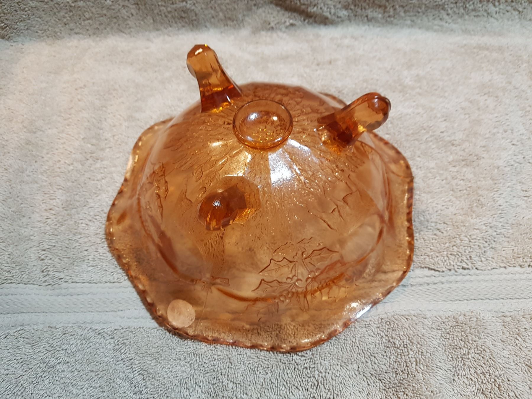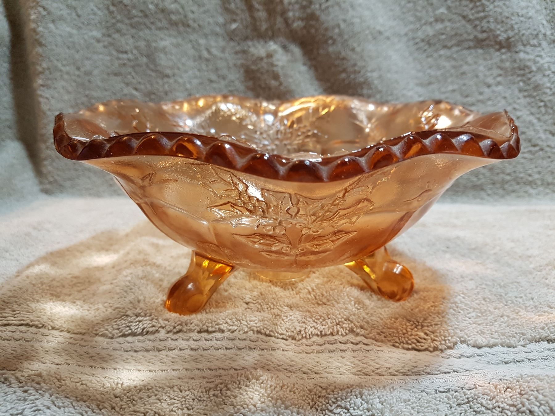 PEACHY DEPRESSION GLASS 3 FOOTED CANDY DISH