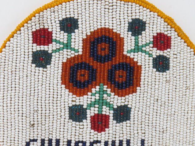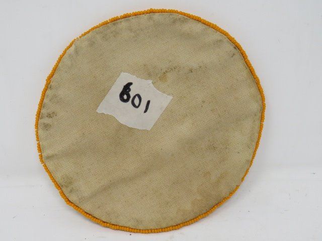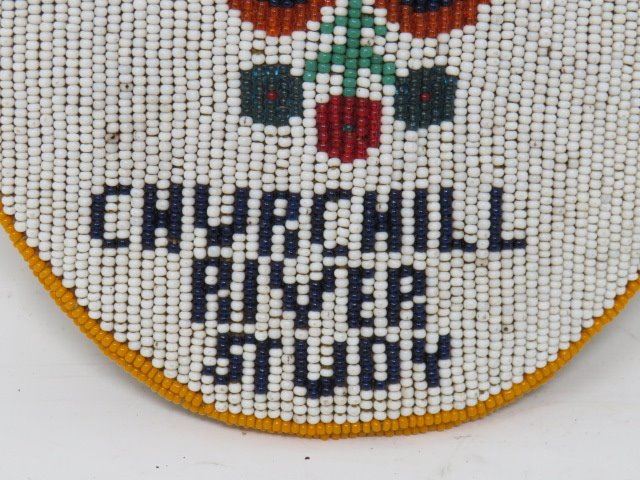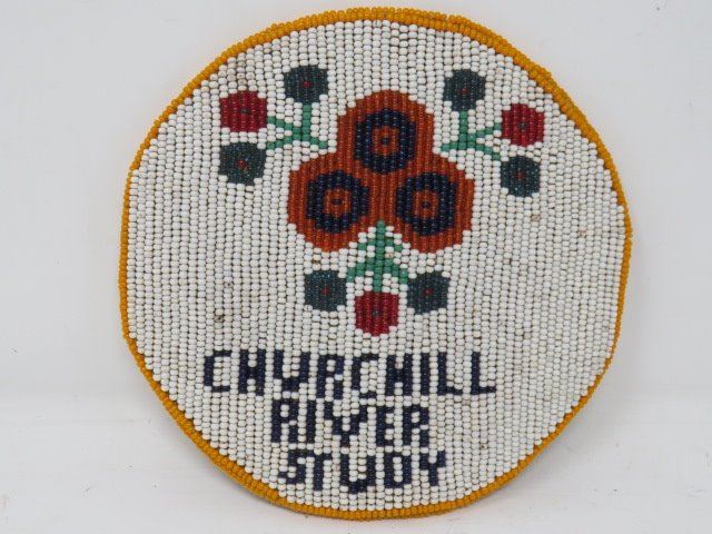 PENDANT (LEATHER BOUND W/NATIVE CRAFT BEADING) *COMMEMORATING CHURCHILL RIVER STUDY 1970s* (6" DIAM)