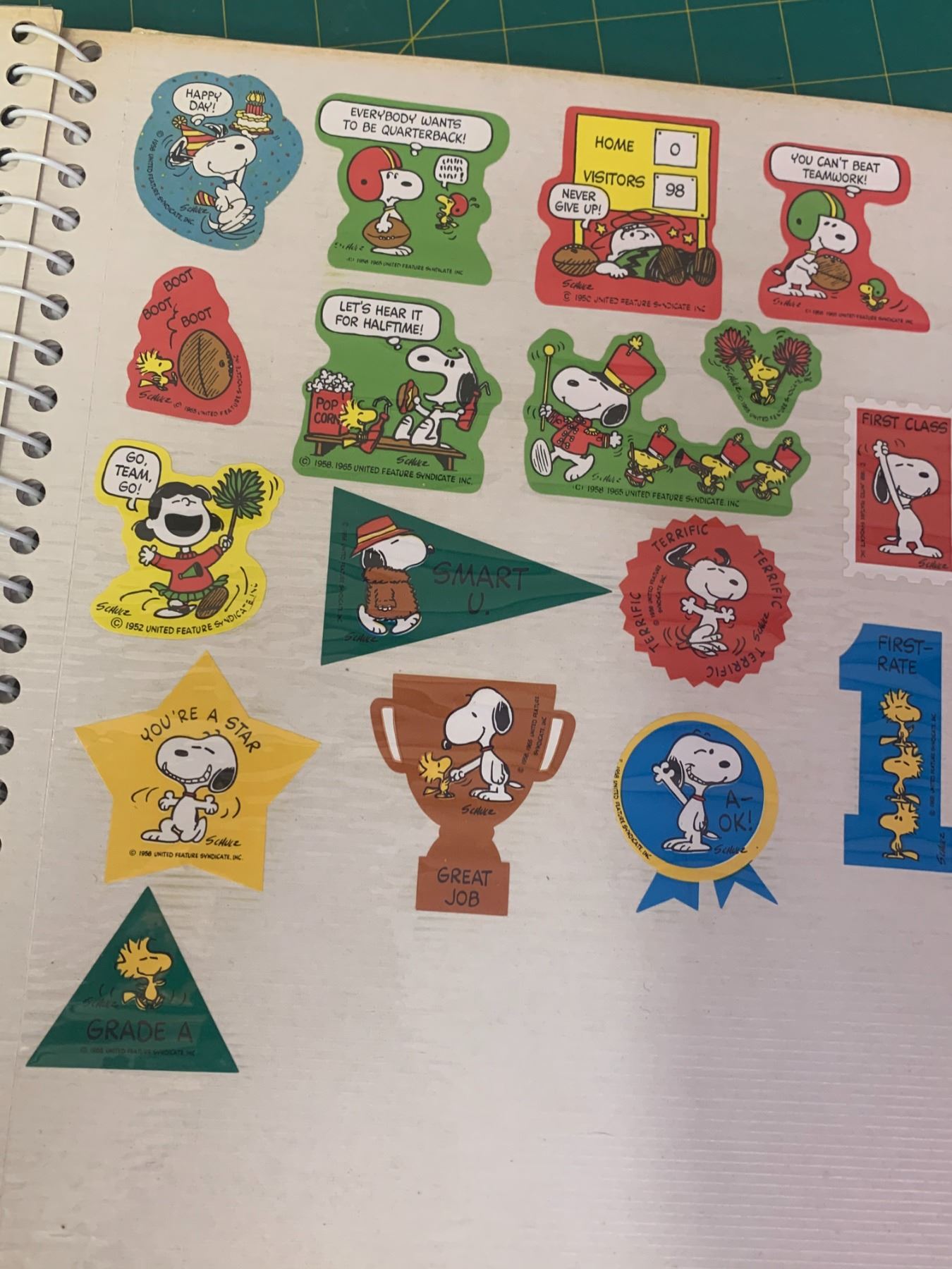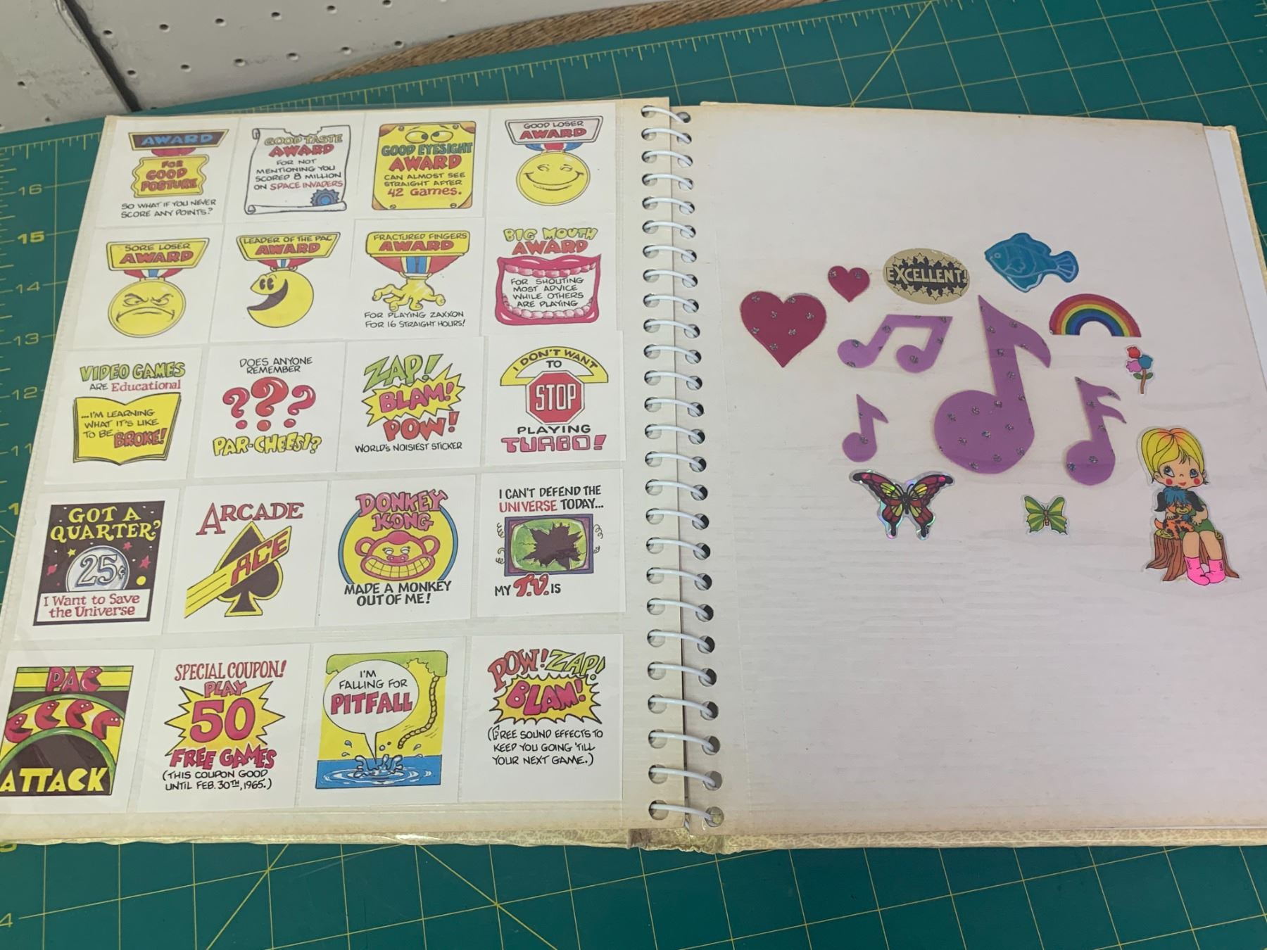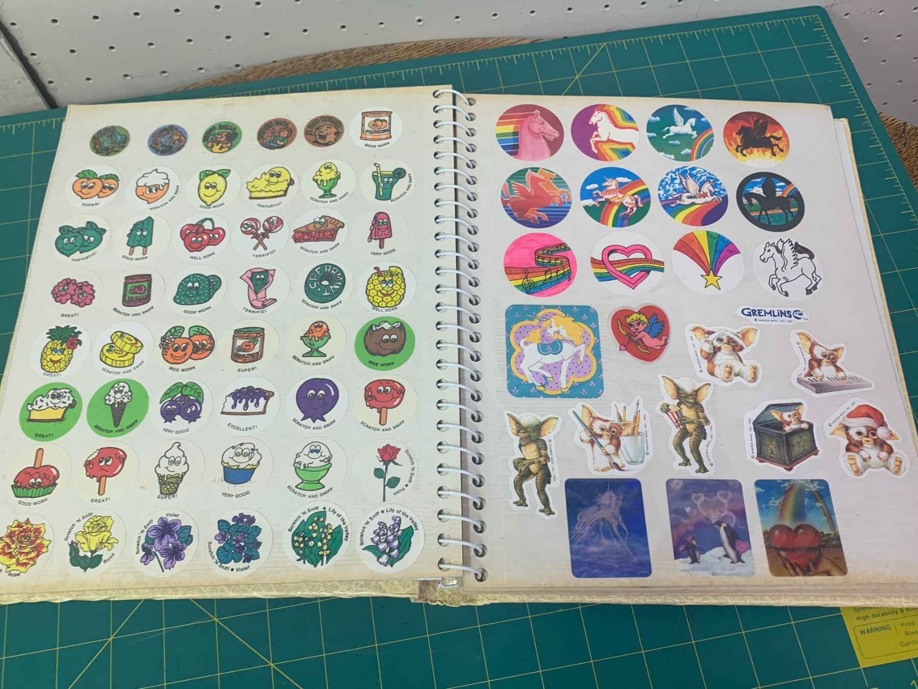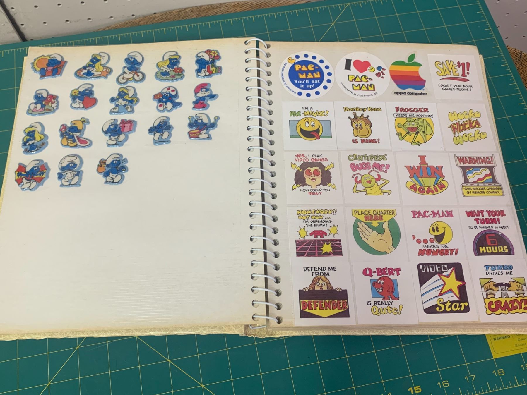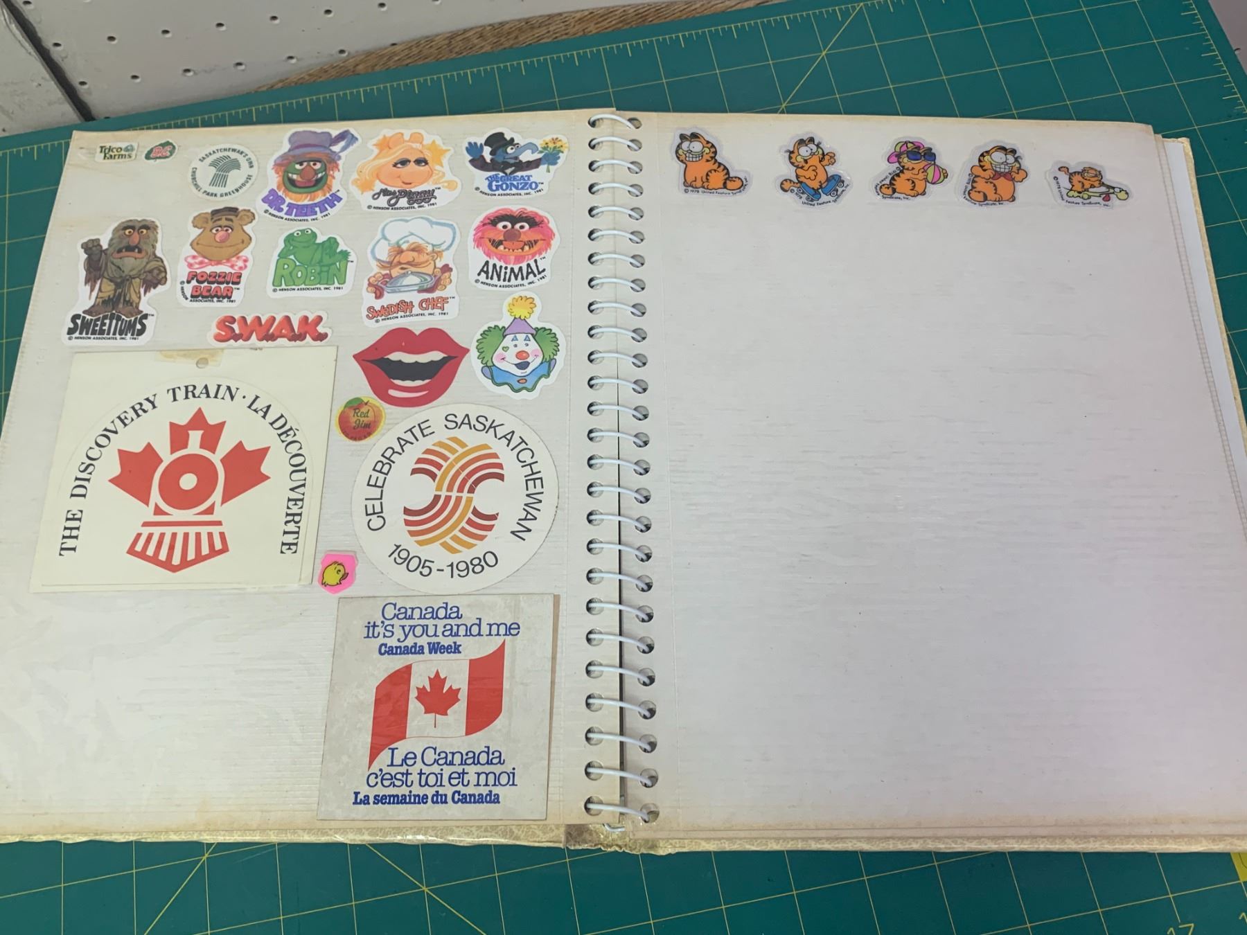 PHOTO ALBUM OF APPROX 200 VINTAGE STICKERS SMURFS GARFIELD SCRATCH AND SNIFF GREMLINS AND MORE