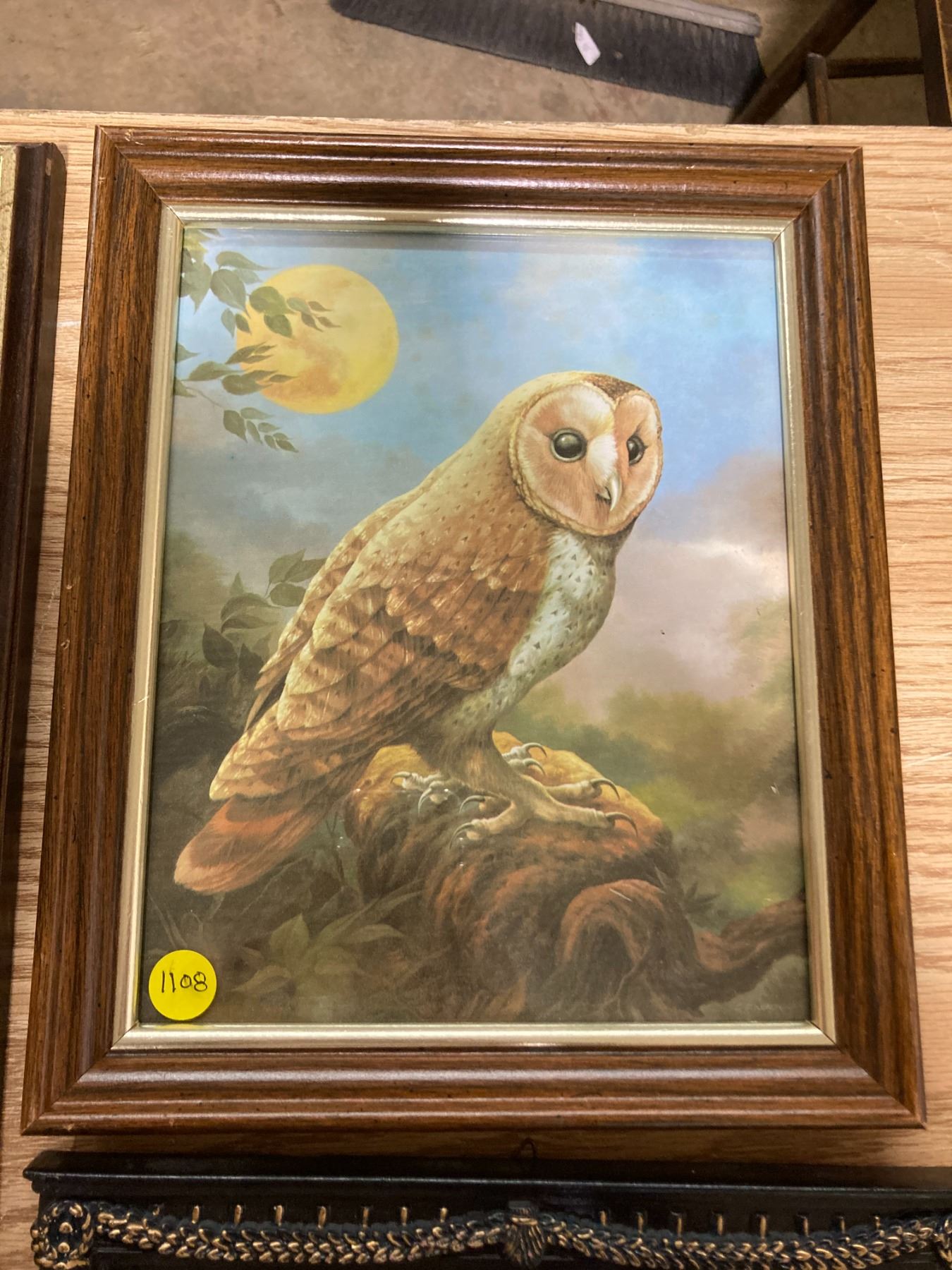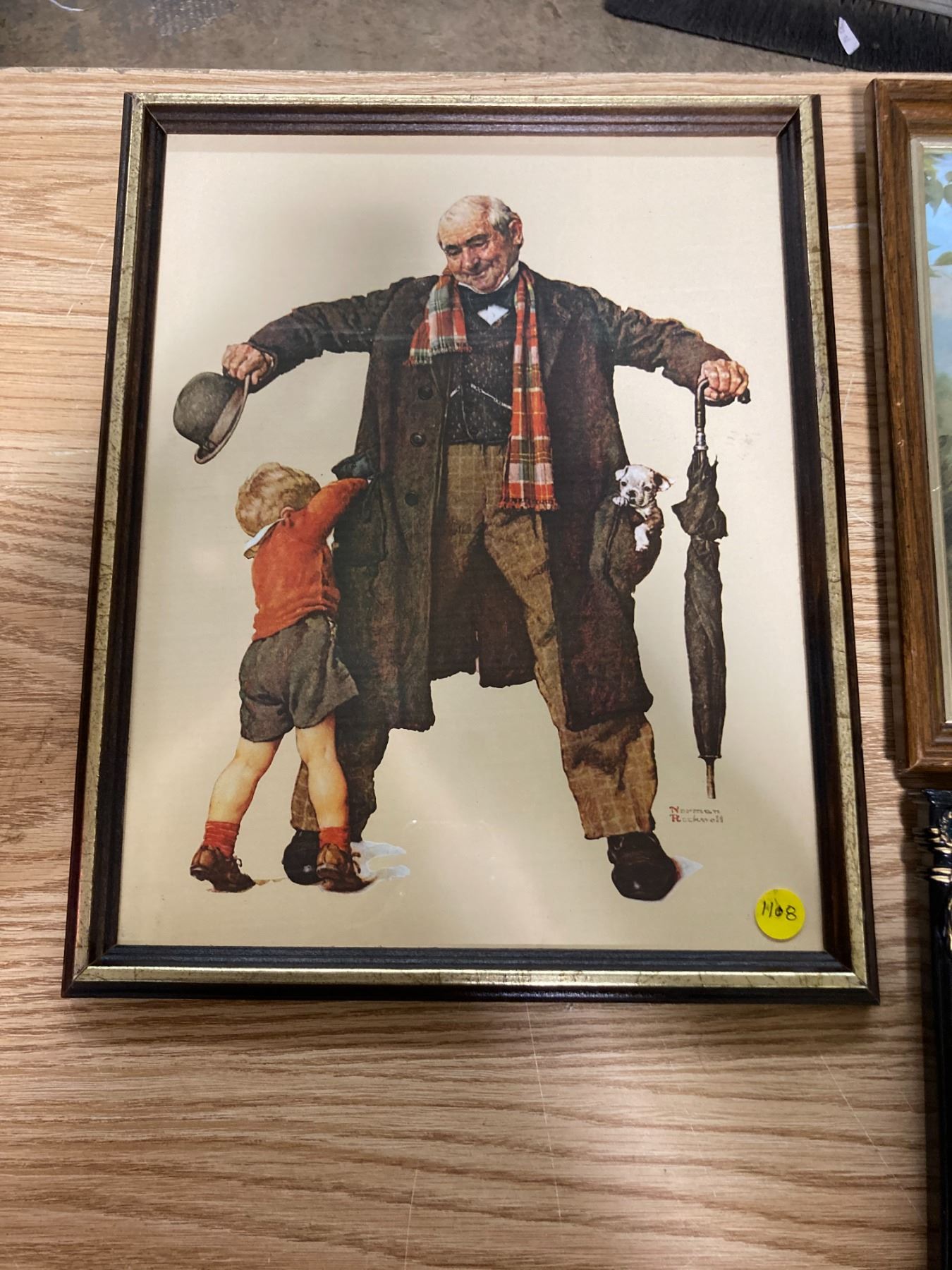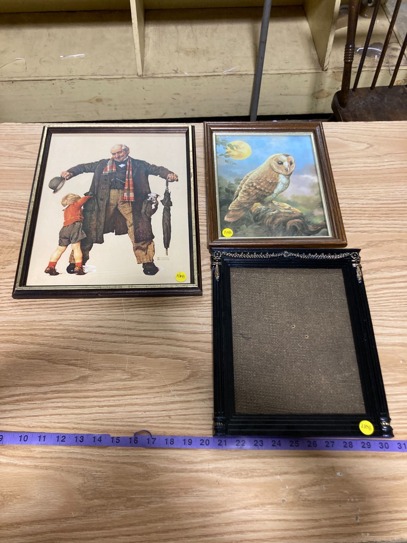 PICTURE OF OWL + BLACK FRAME W/ DESIGN + NORMAN ROCKWELL PICTURE