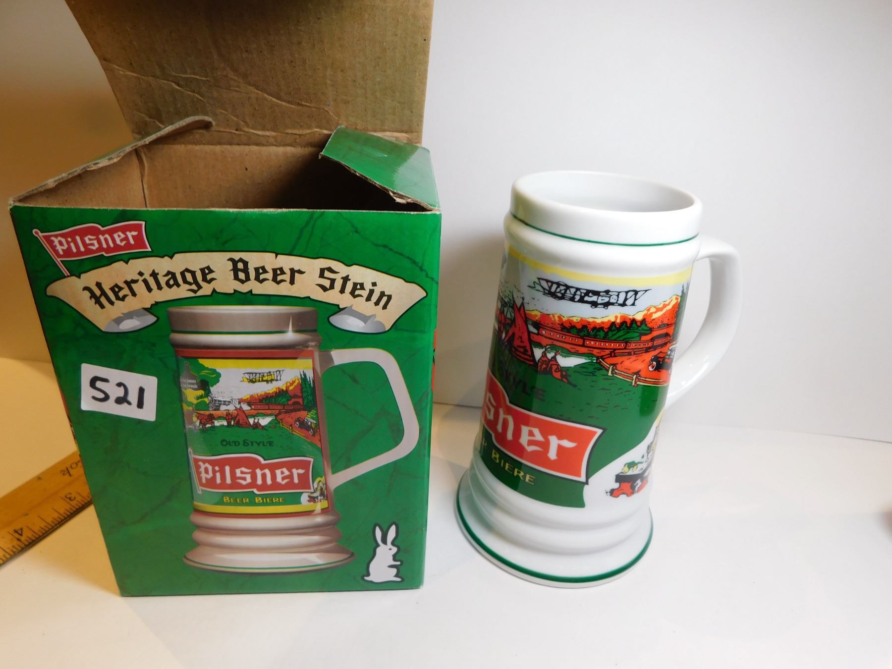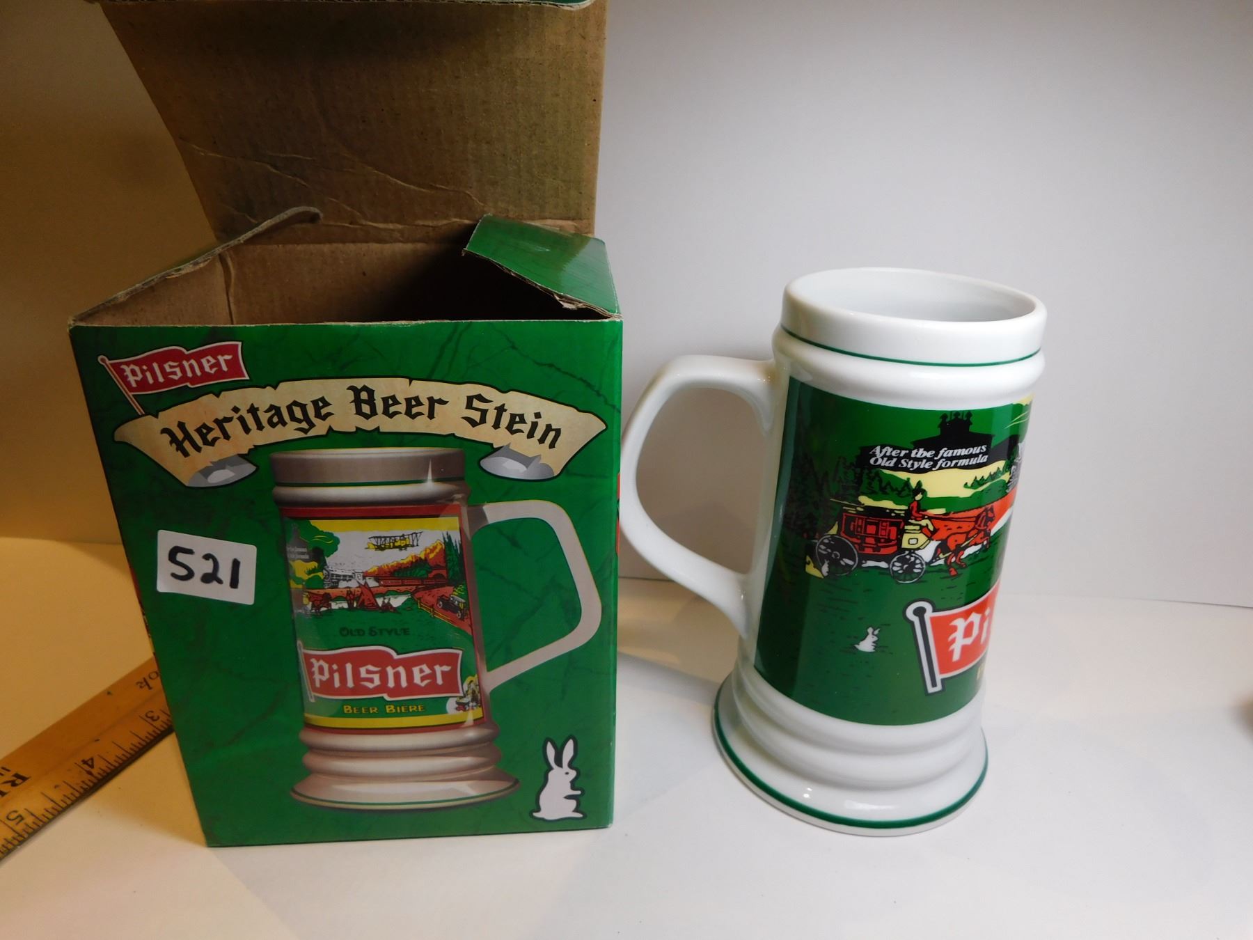 PILSNER BEER STEIN IN BOX BUNNY ON BOTTOM OF STEIN
