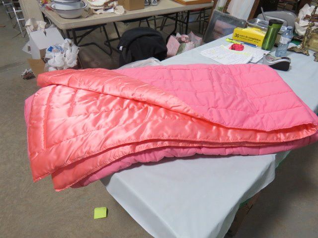 PINK SATIN QUILT/BLANKET, 1970s, UNUSED, HAND CRAFTED
