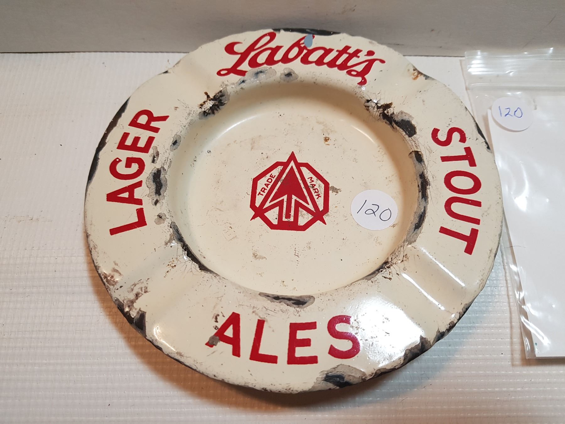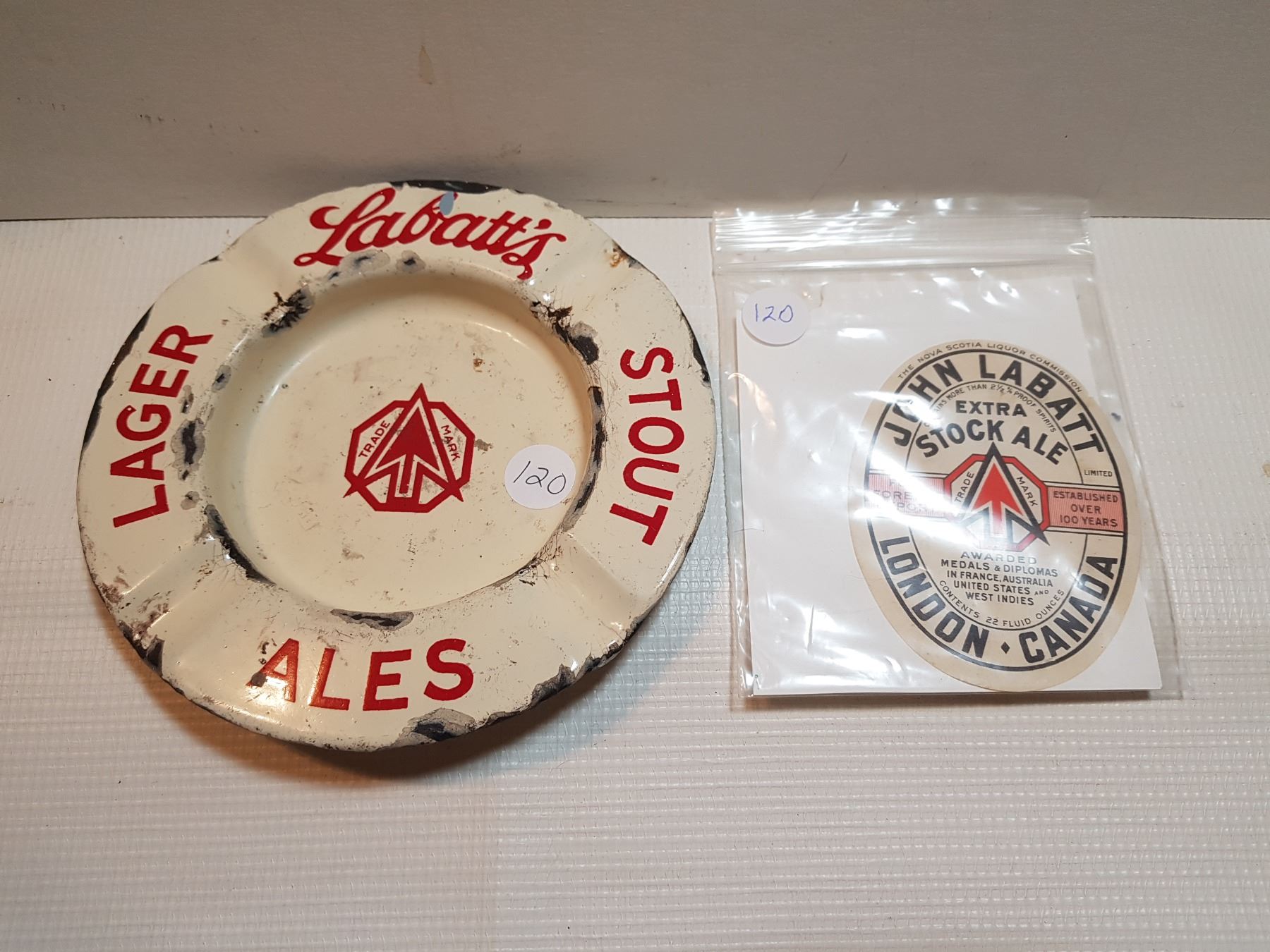 PORCELAIN LABATT ASHTRAY AND ORIGINAL LABEL