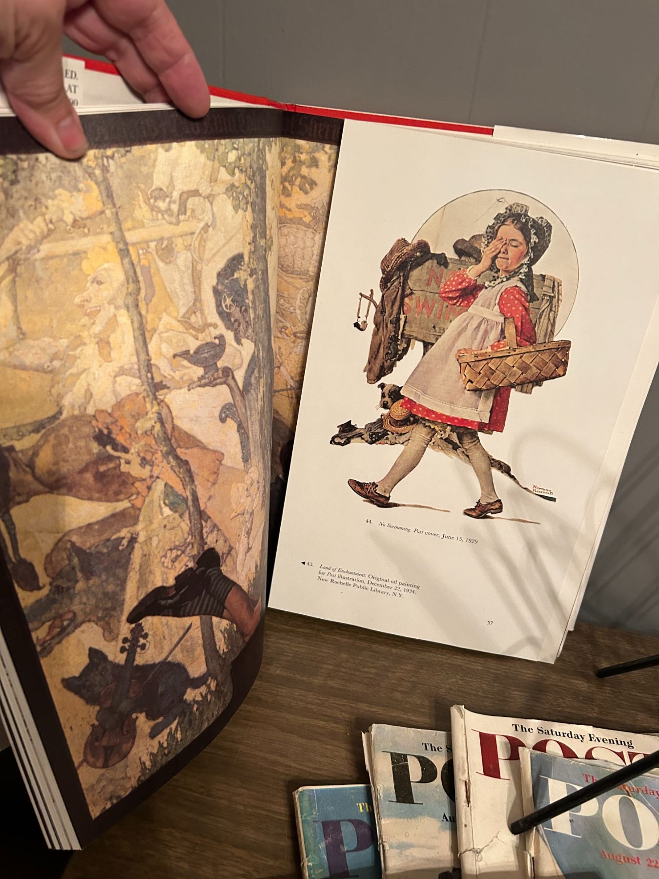 POST vintage Mags 1956-60, Norman Rockwell hard Back Book, vintage Magazije Rack