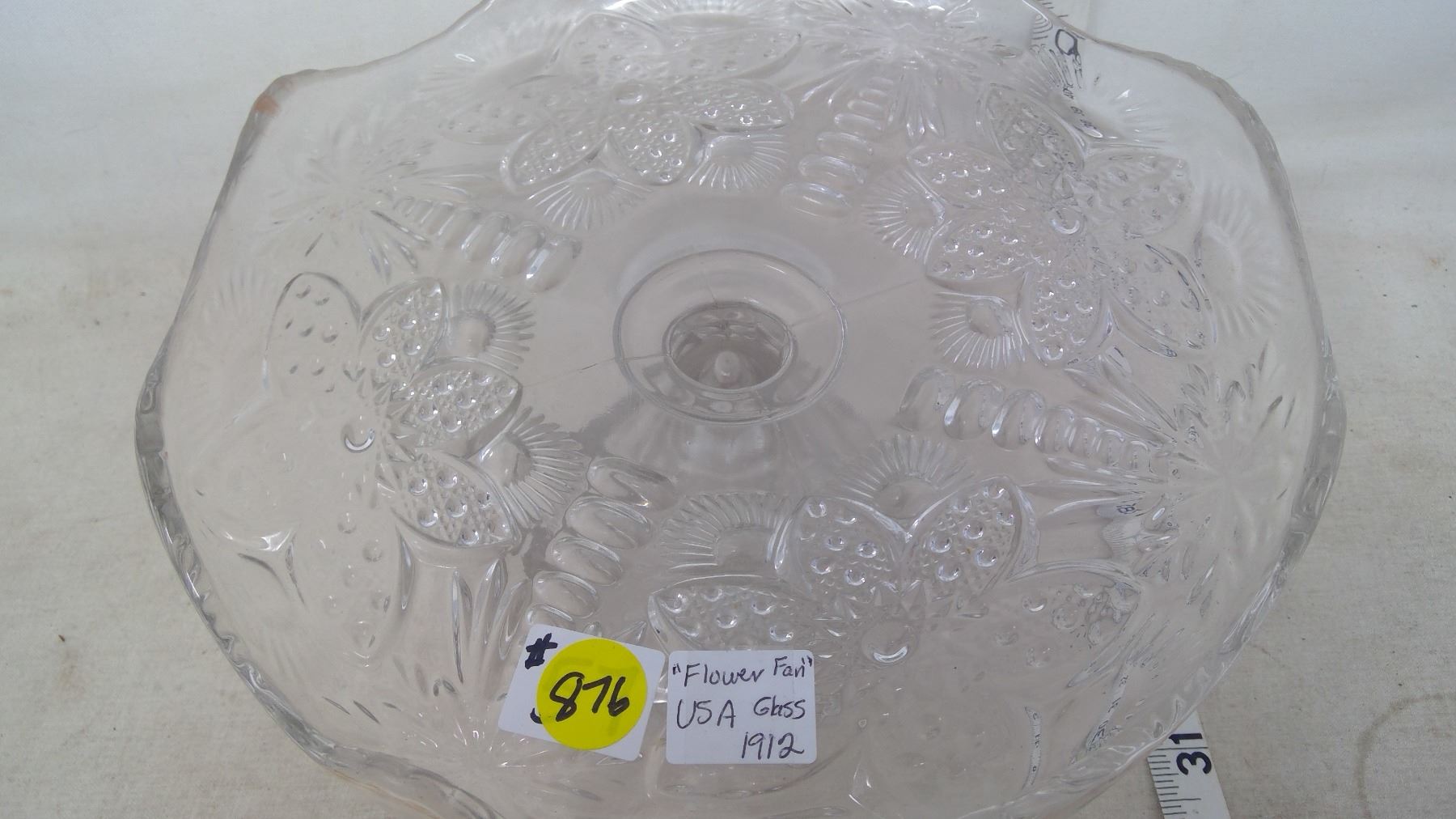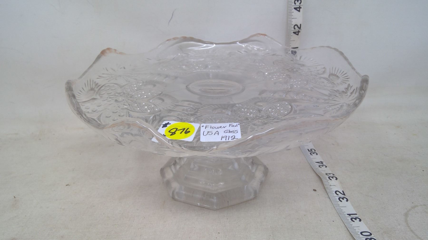 PRESSED GLASS CAKE PLATE "FLOWER FAN" US GLASS 1912