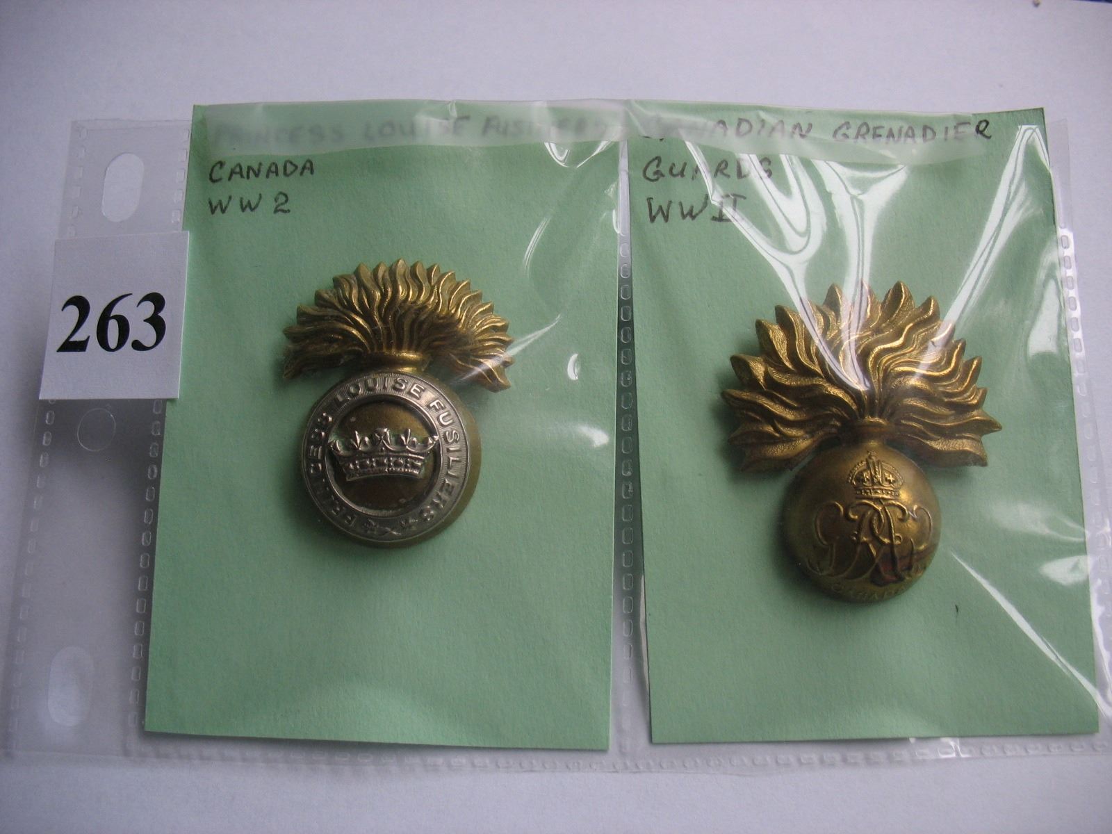 PRINCES LOUISE FUSILIERS & CANADIAN GRENADIER CAP BADGES - WW II