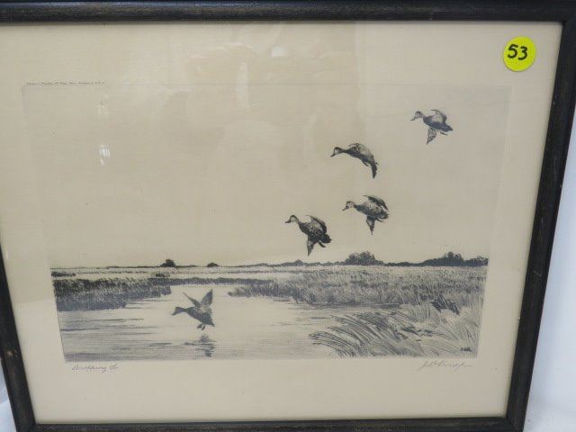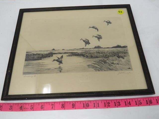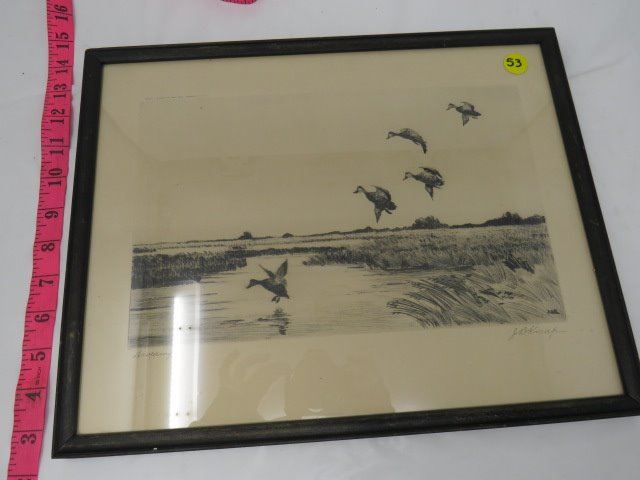 PRINT (DUCKS LANDING IN WATER-SIGNED) *FRAMED*