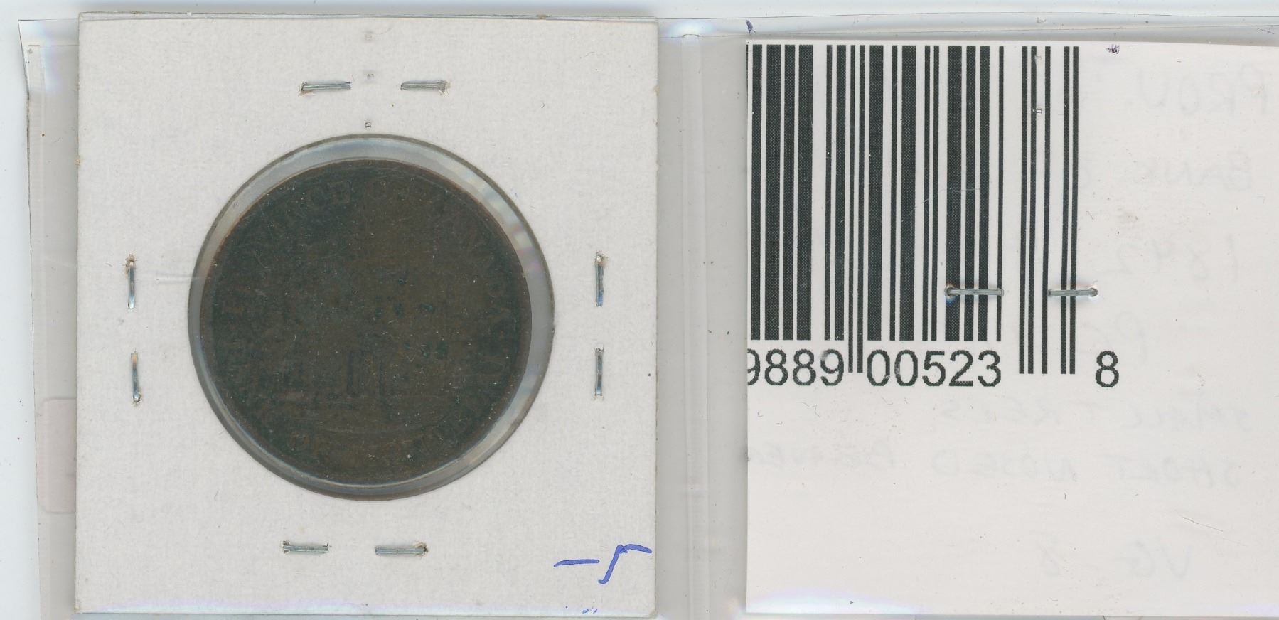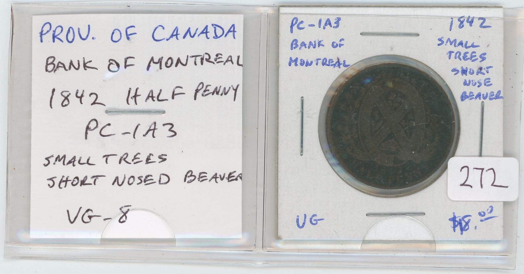 PROVINCE OF CANADA PRE-CONFEDERATION TOKEN. 1842 BANK OF MONTREAL HALF PENNY. SMALL TREES, SHORT NOSED BEAVER. PC-1A3. VG-8.
