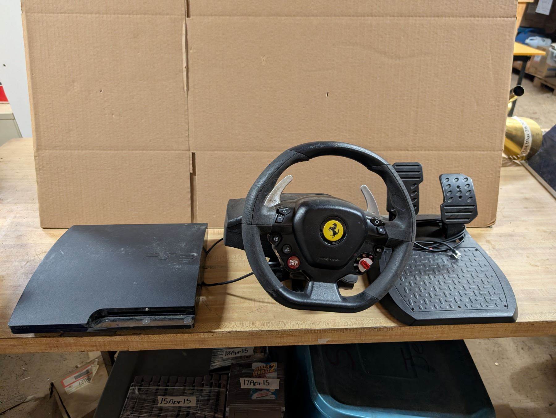 PS3 (no Cords, Not Tested) W/ PlayStation Steering wheel and Pedal