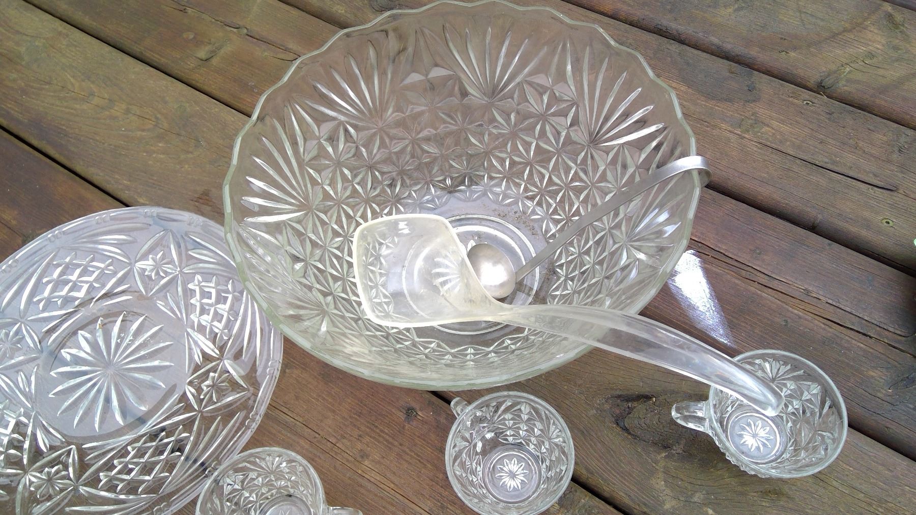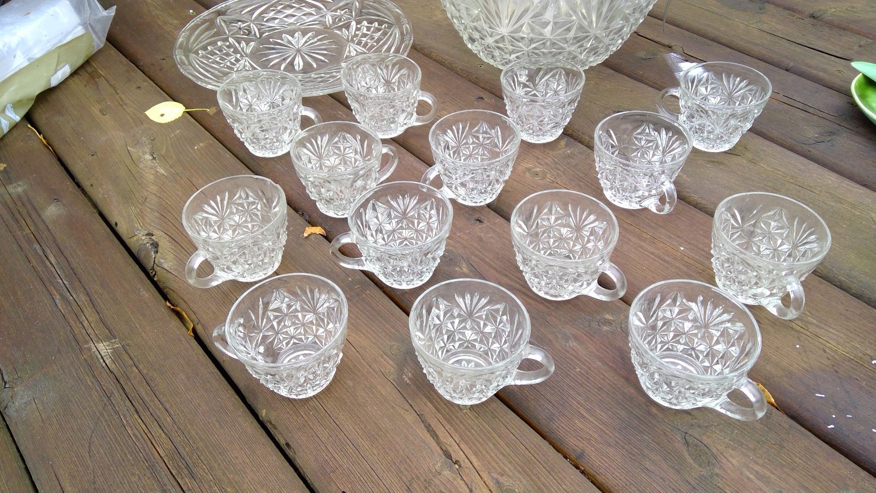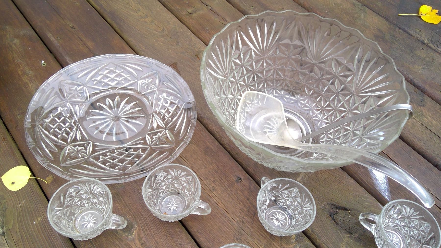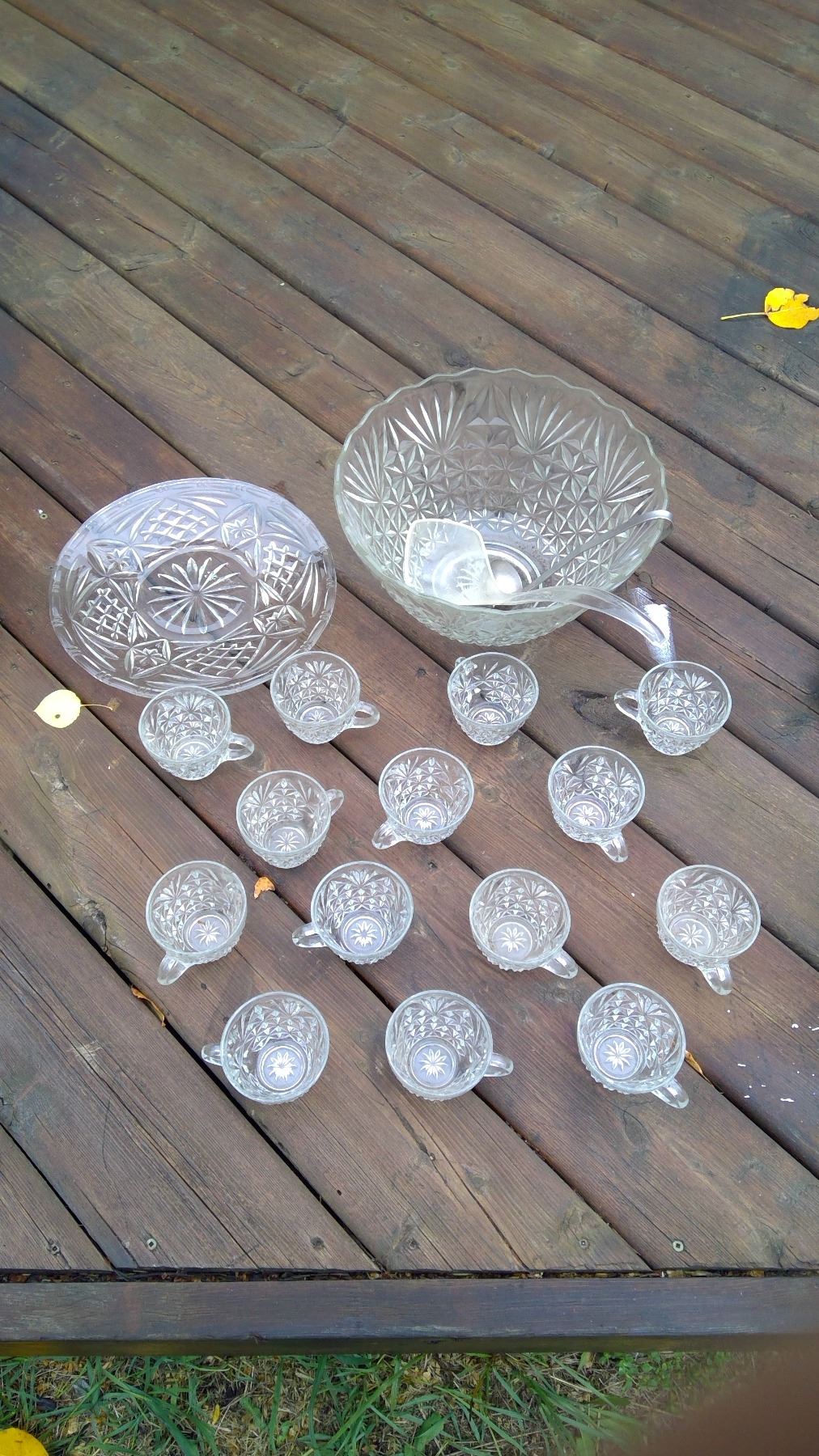 PUNCH BOWL W/ 14 CUPS AND A PLATTER