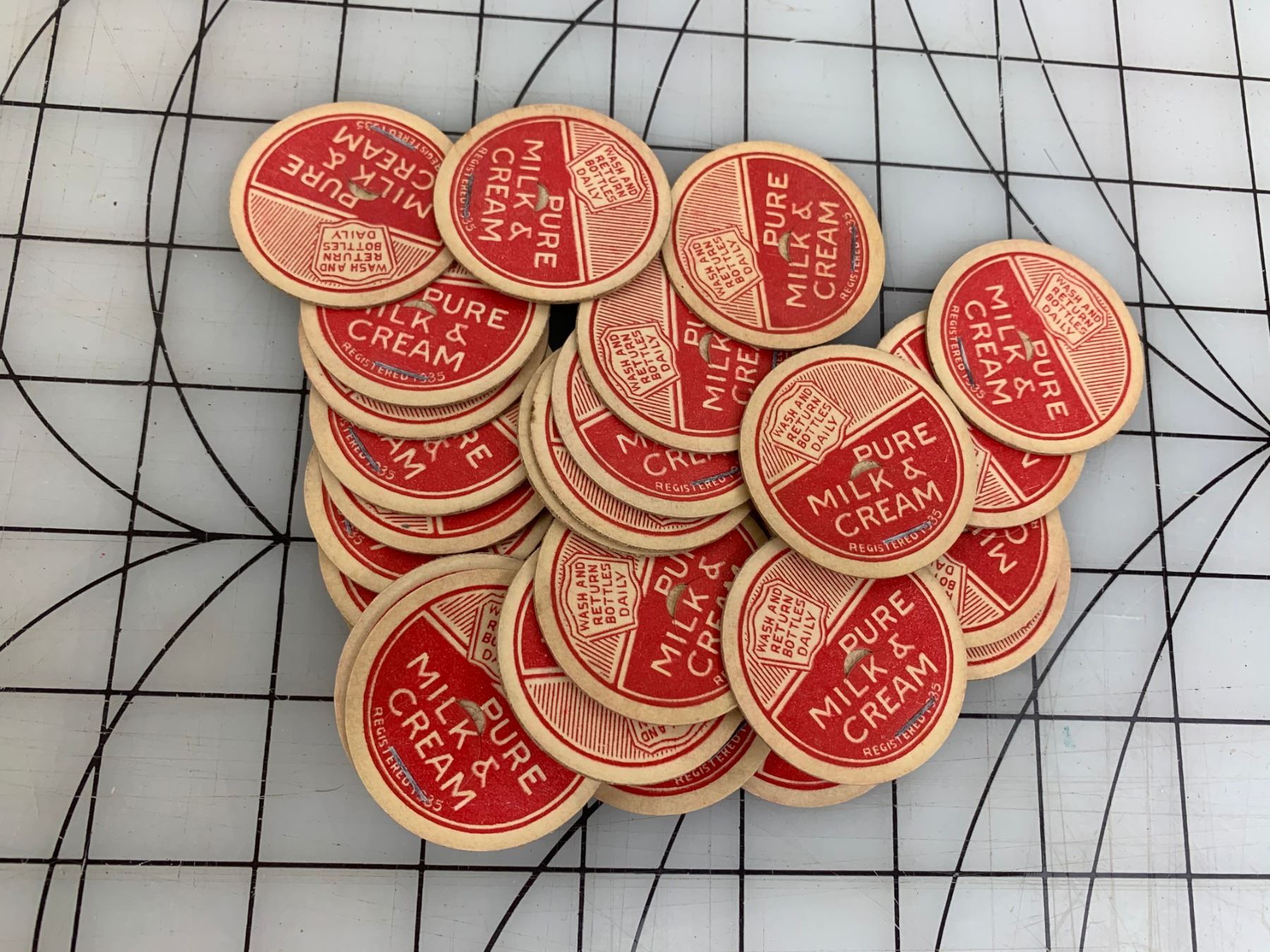 PURE MILK AND CREAM LOT OF UNUSED MILK BOTTLE CAPS
