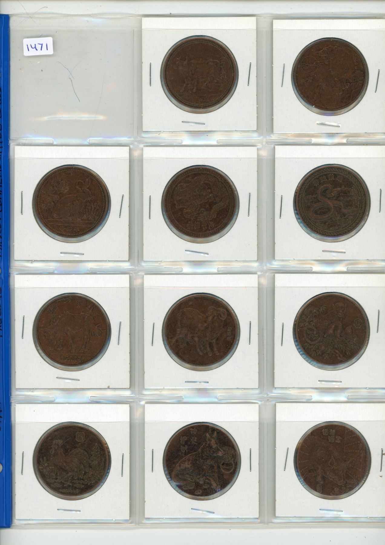 Page of Uncirculated Chinese Zodiac Copper Coins
