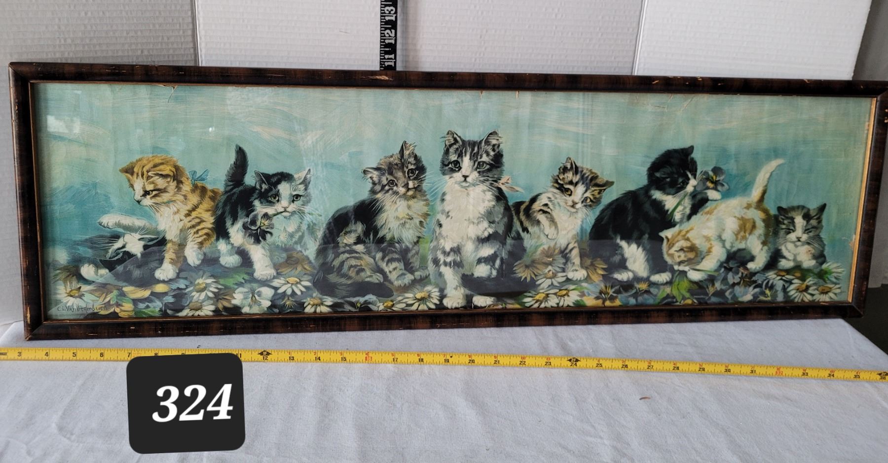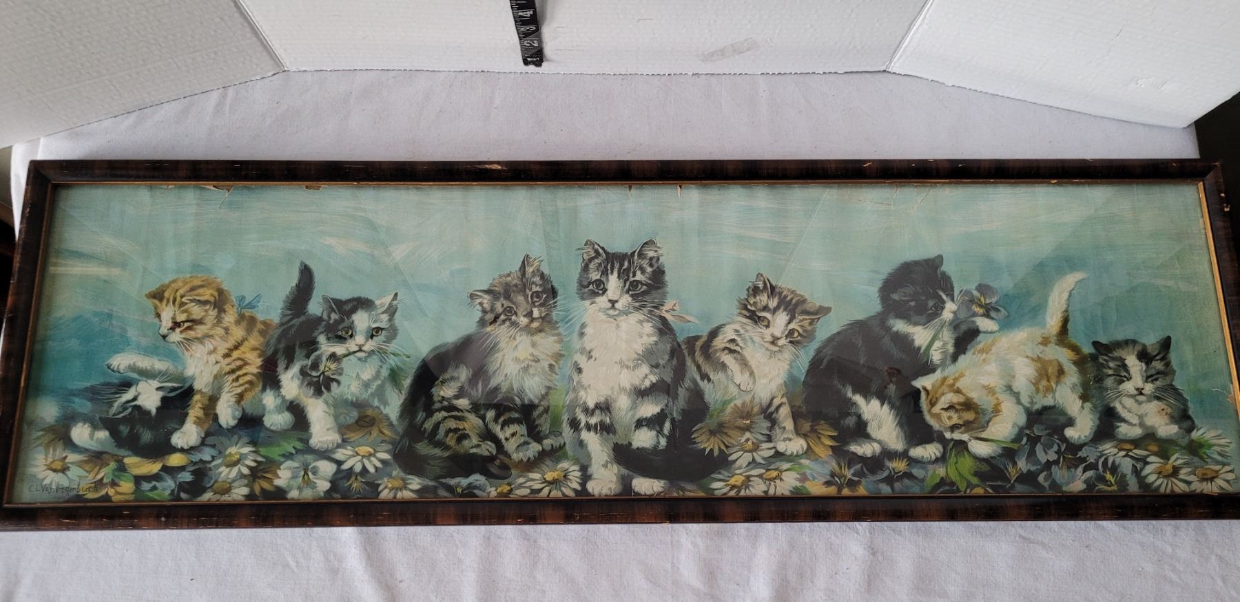 Painting by C.L. VanVredenburgh “A long Yard of kittens” in original frame.
