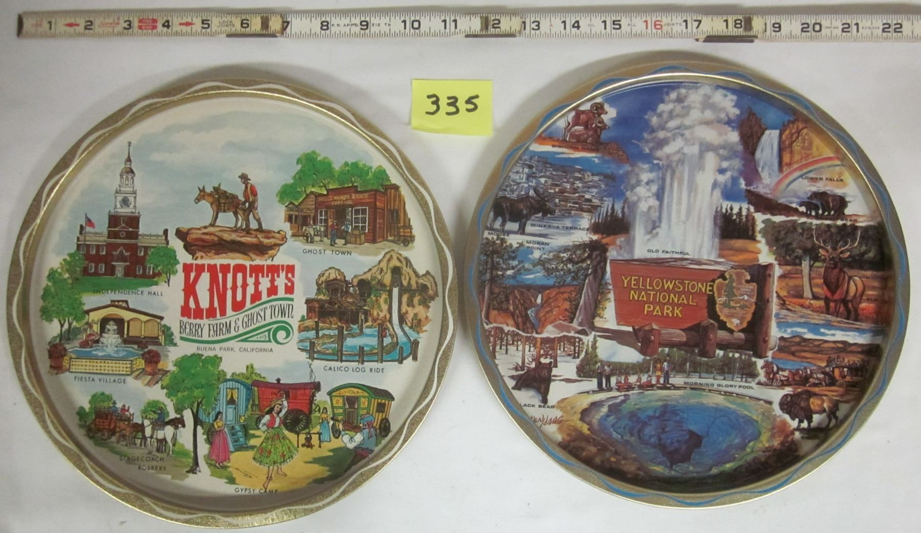 Pair 11" souviner serving trays metal Yellowstone National Park Knotts Berry Farm