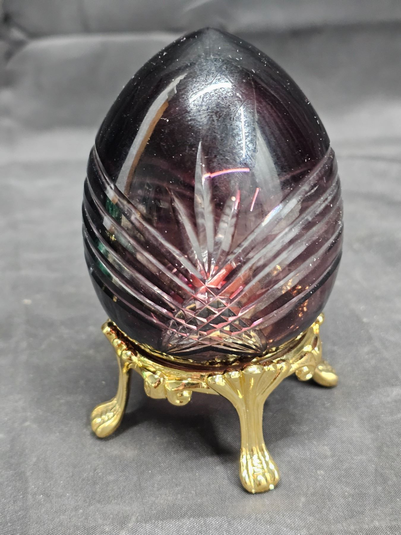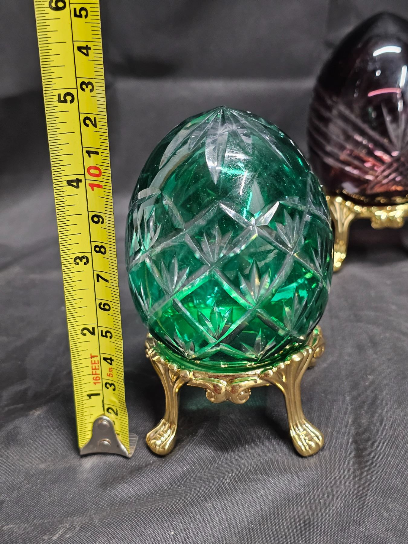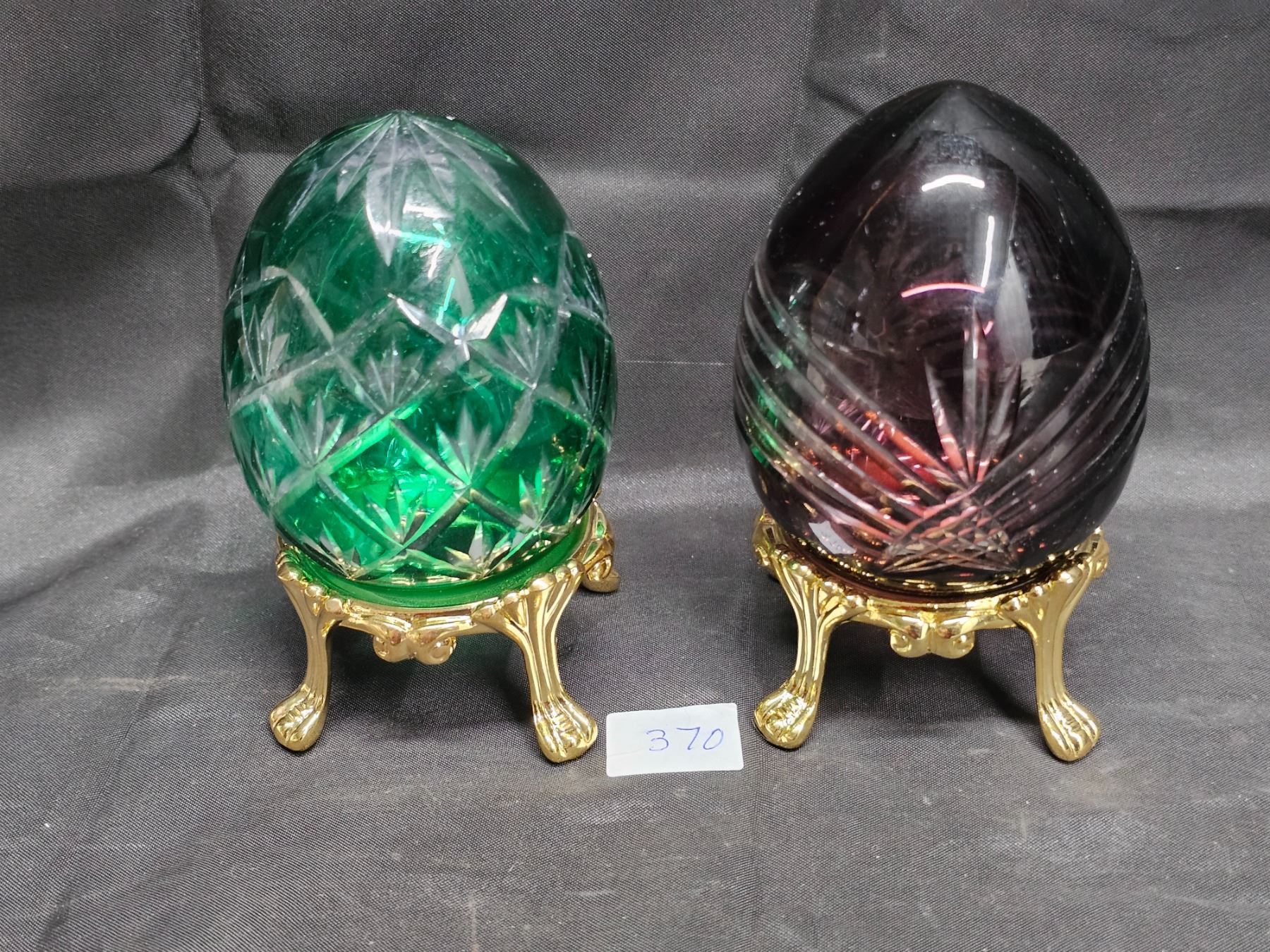 Pair #2 of Bohemian cut glass eggs on 24k gold-plated stands