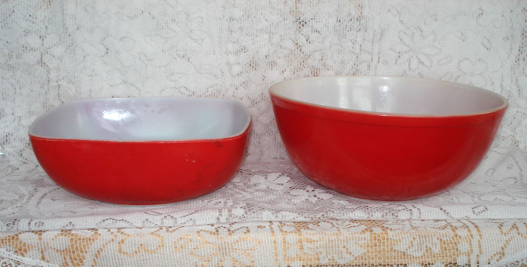 Pair Red Pyrex Mixing Bowls