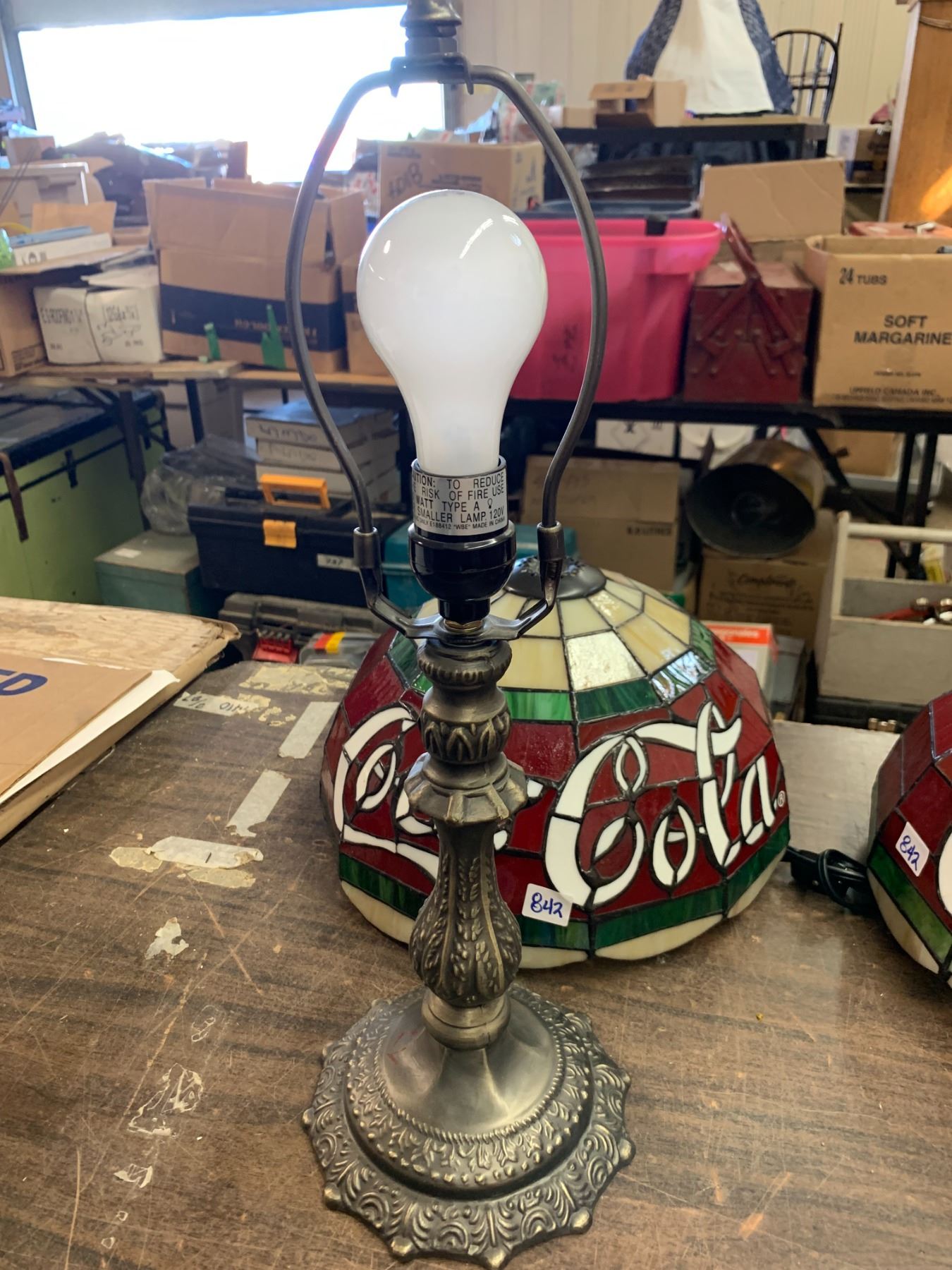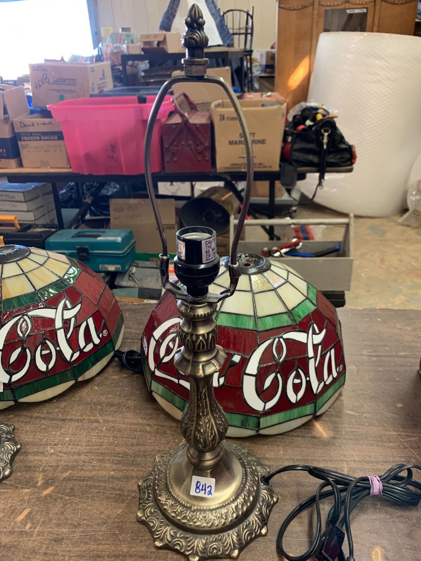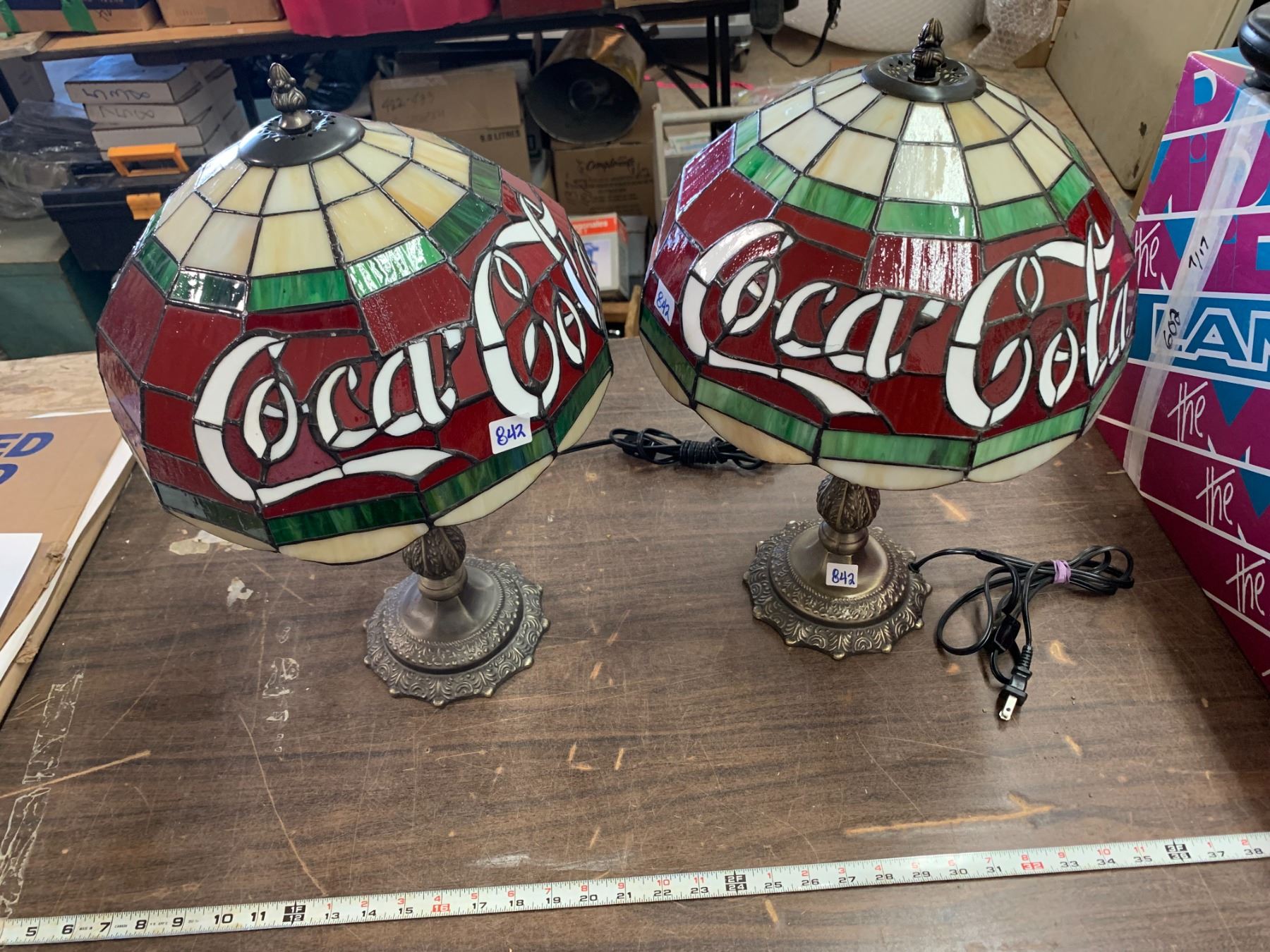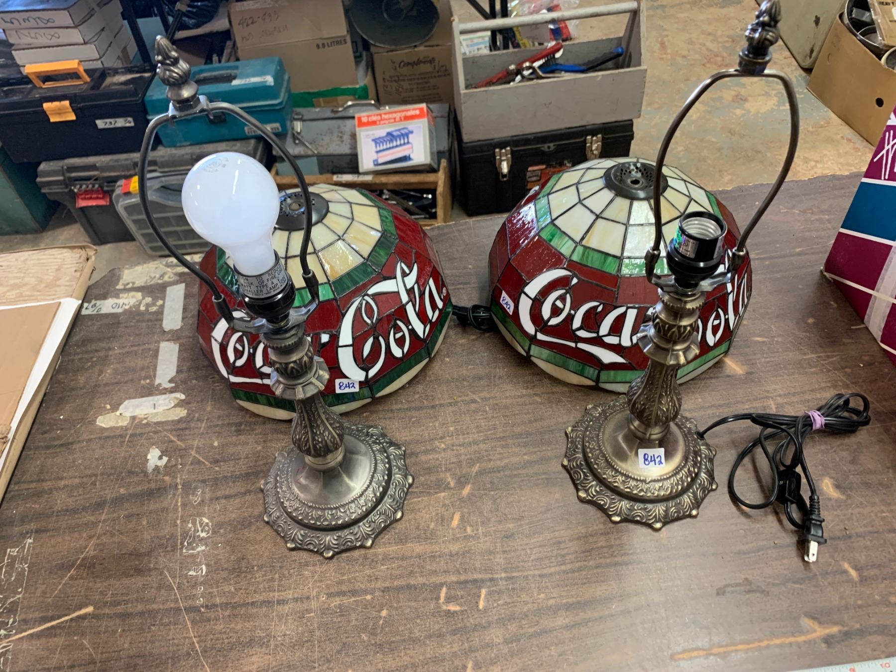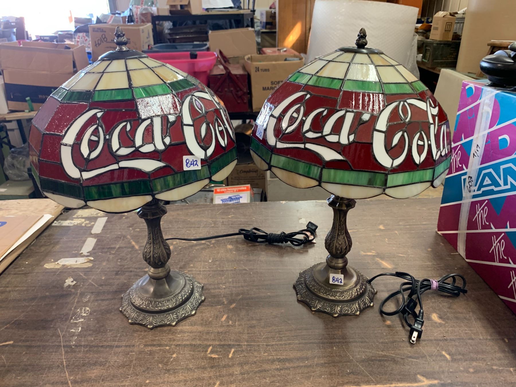 Pair coca-cola table lamps Tiffany style leaded glass