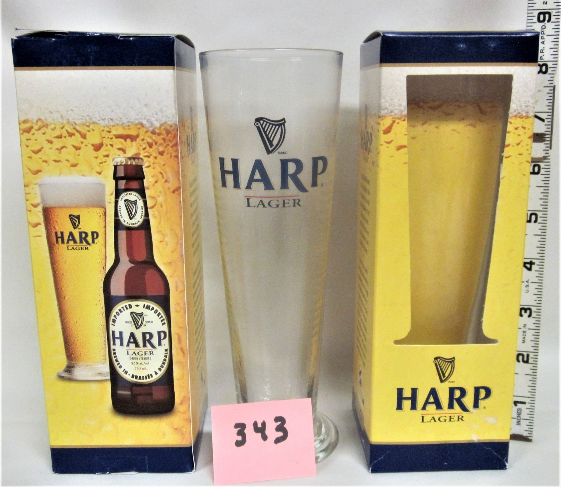 Pair new boxed 8" "HARP" lager Beer glasses