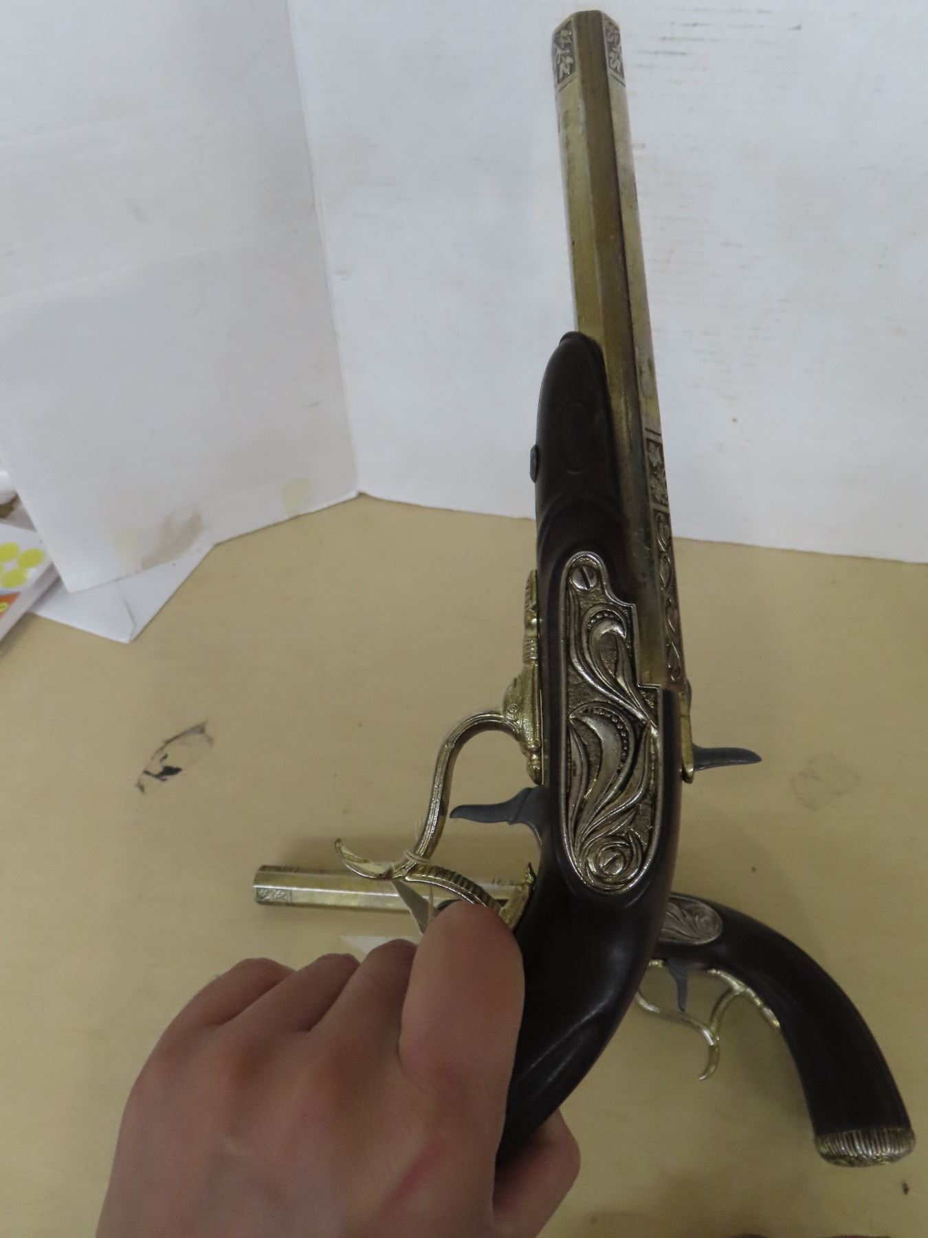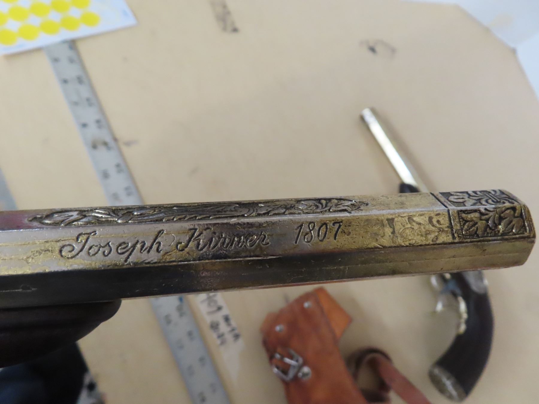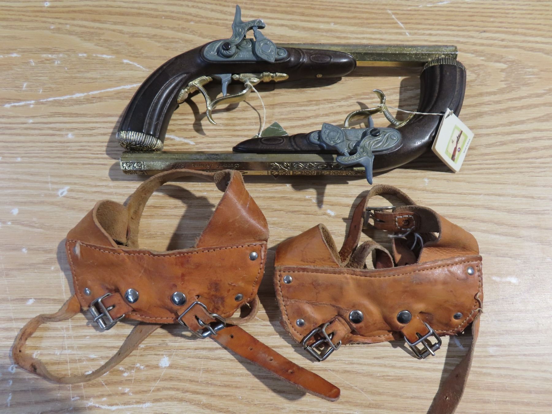 Pair of 1807 replica muskets and 2 leather holsters