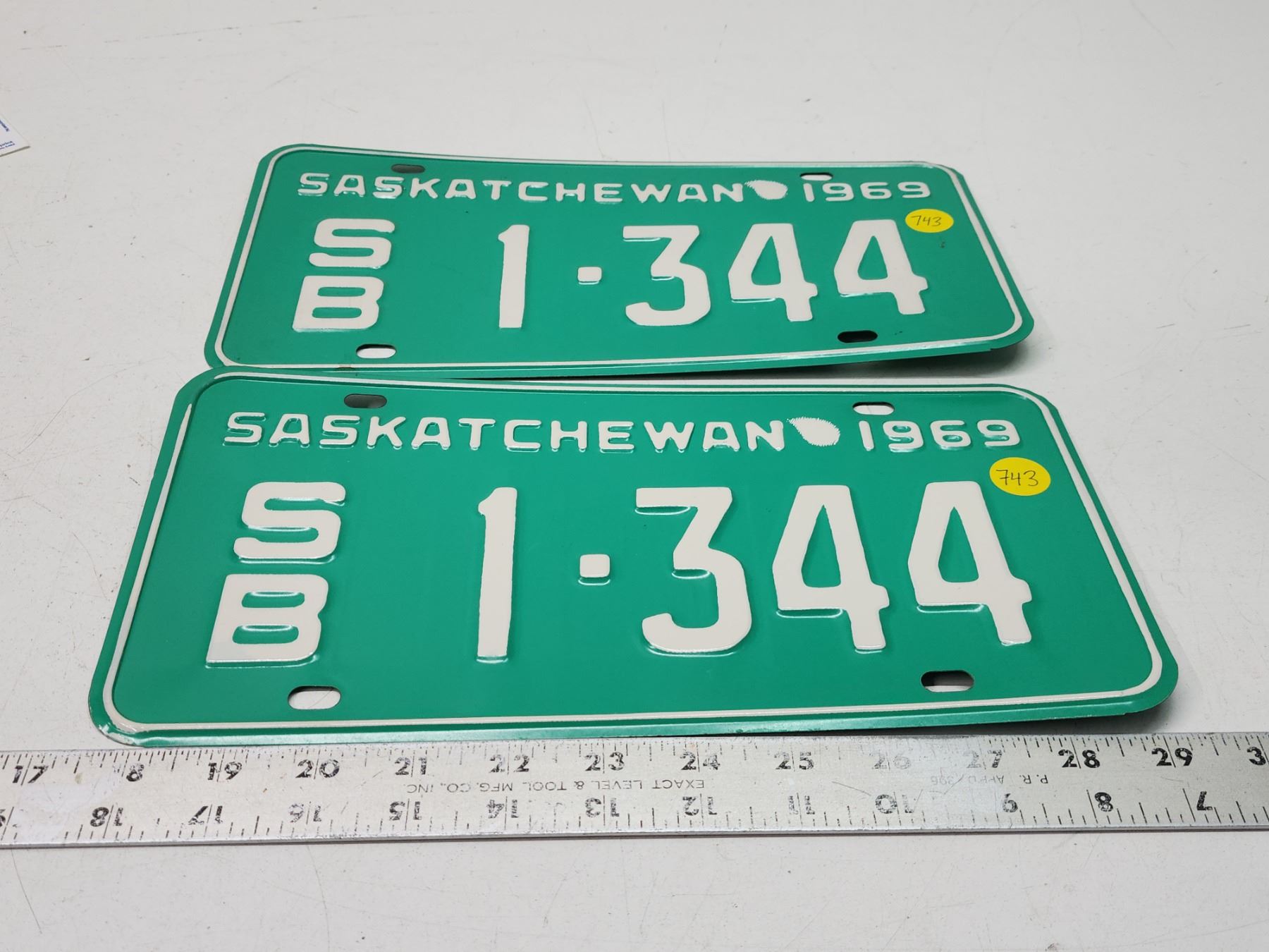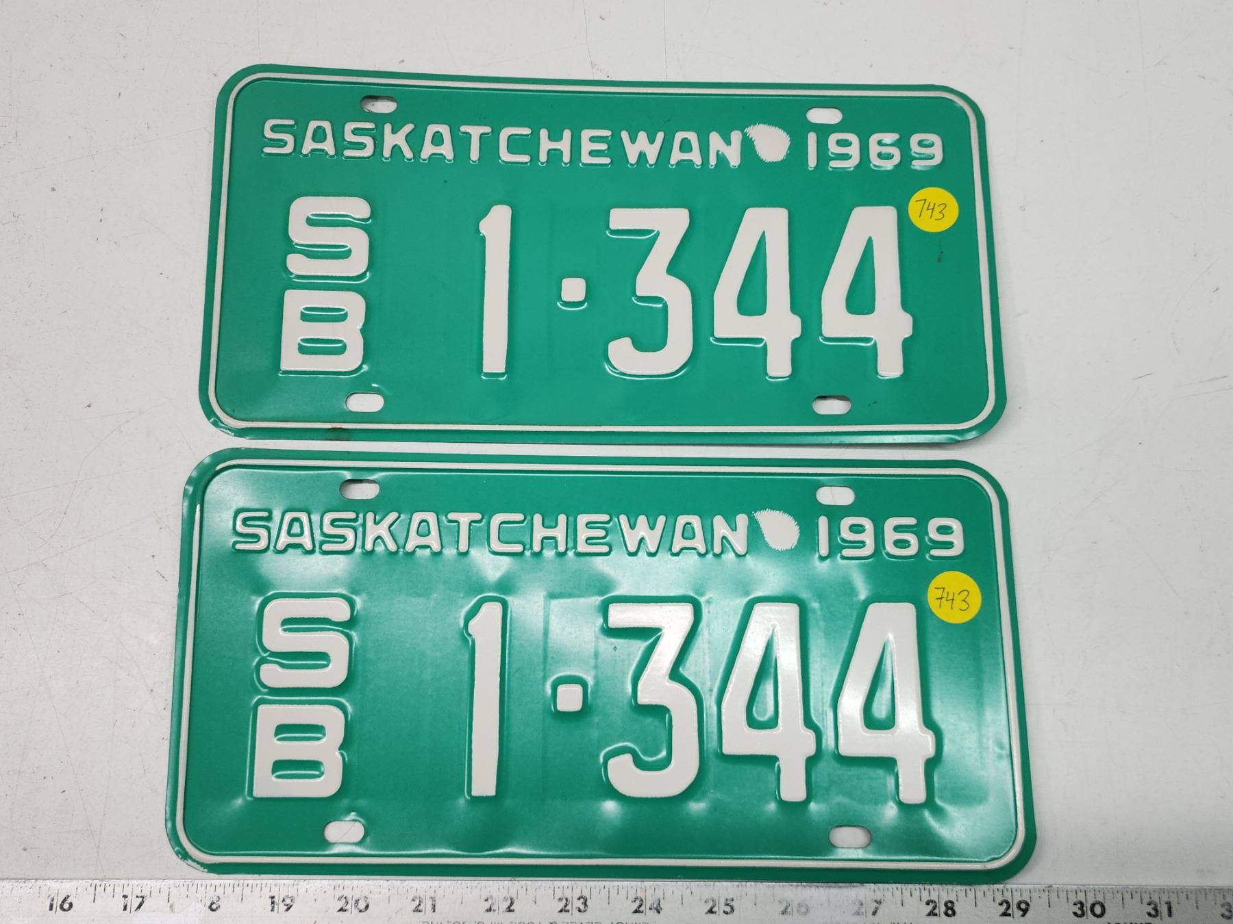 Pair of 1969 Saskatchewan license plates - S/B 1-344