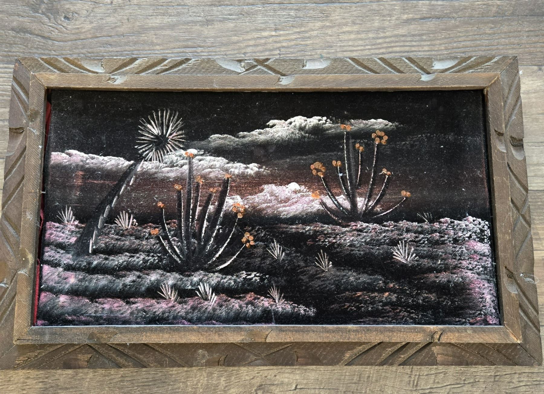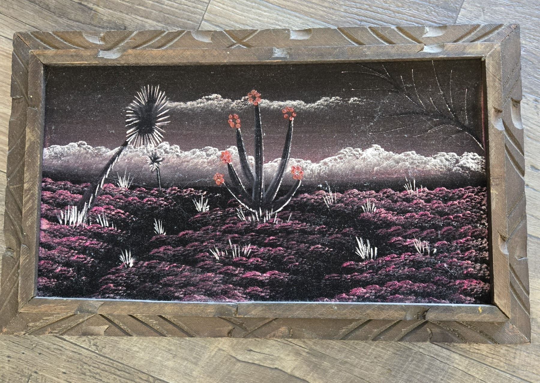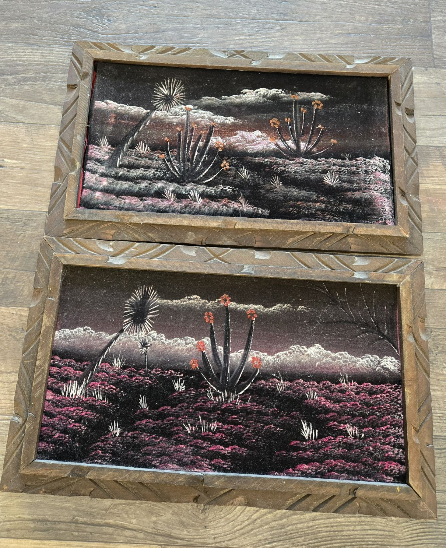 Pair of 1970s velvet scene paintings. Original wood frames. Frame maesures 23"x14". Great condition.