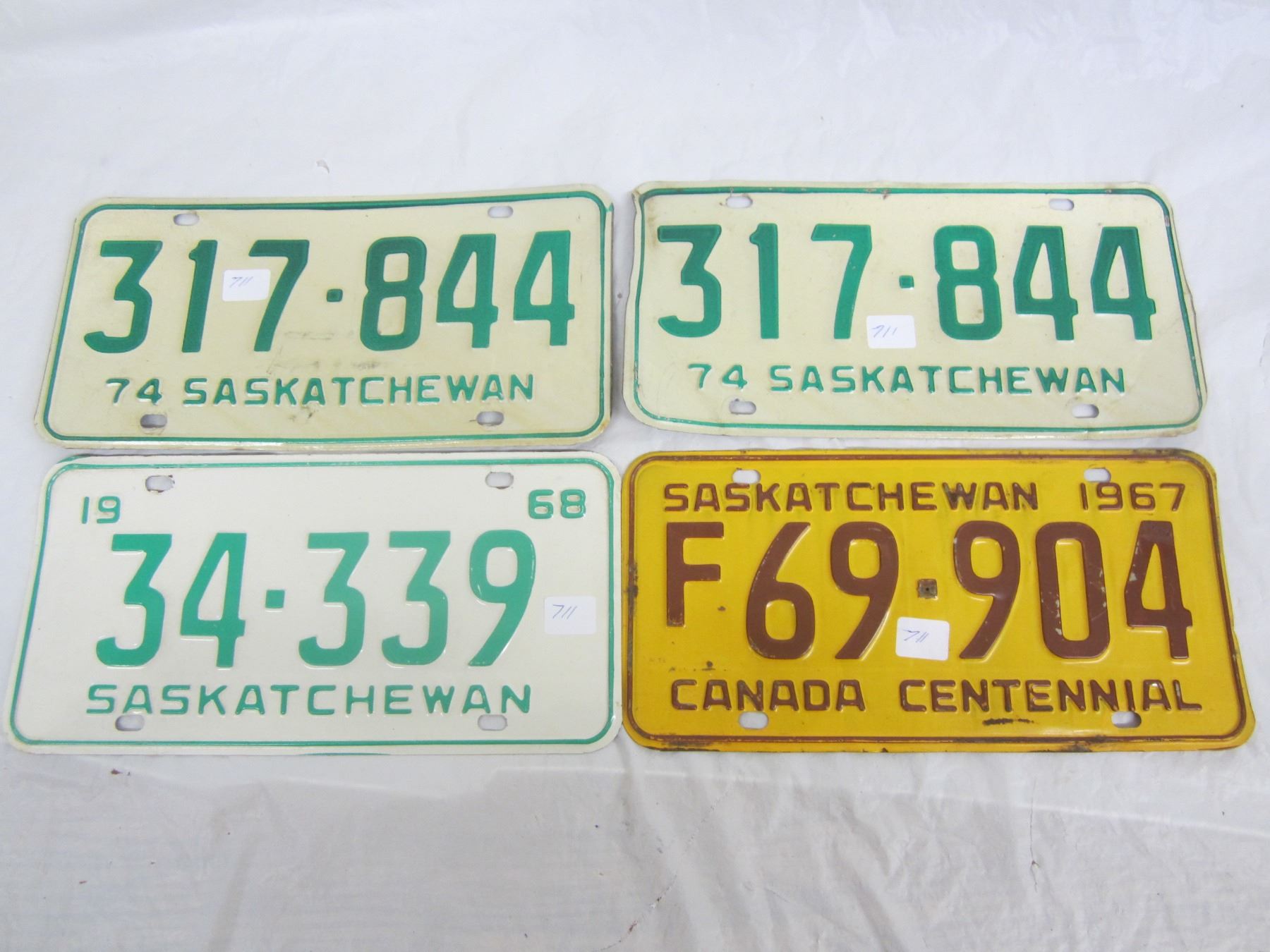 Pair of 1974 Saskatchewan and a 1967, 1968 License Plates