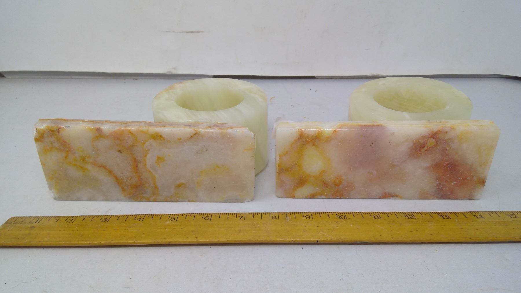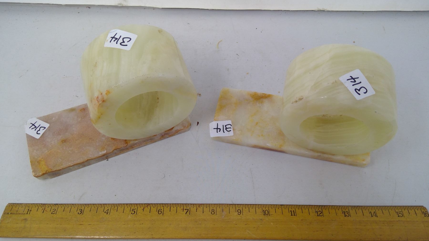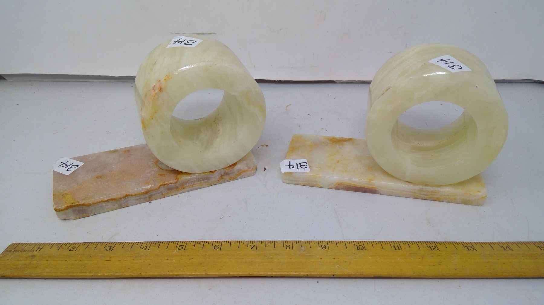 Pair of 2 Onyx Stone Giant Agate Ring Bookends - 4 1/2" Height
