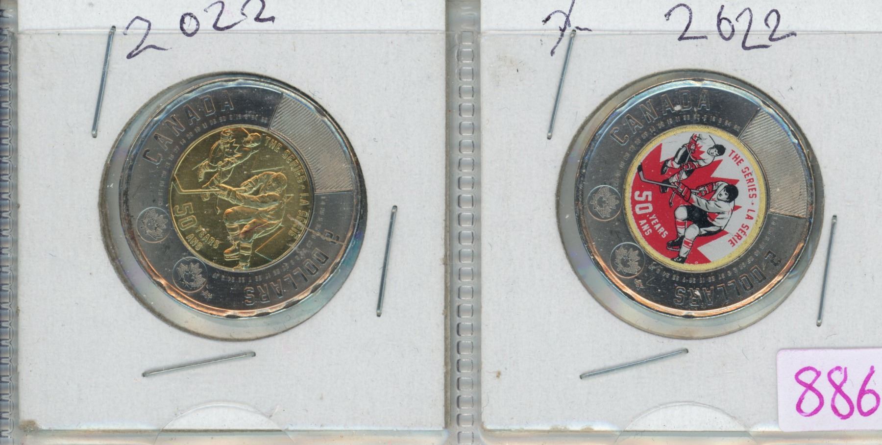 Pair of 2022 "Series Hockey" Canadian 2 dollar coins - 1 is coloured