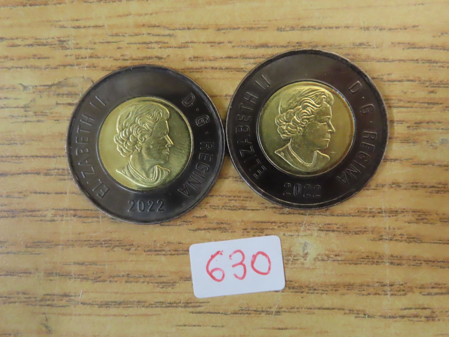Pair of 2022 "solemn tribute to queen elizabeth toonies