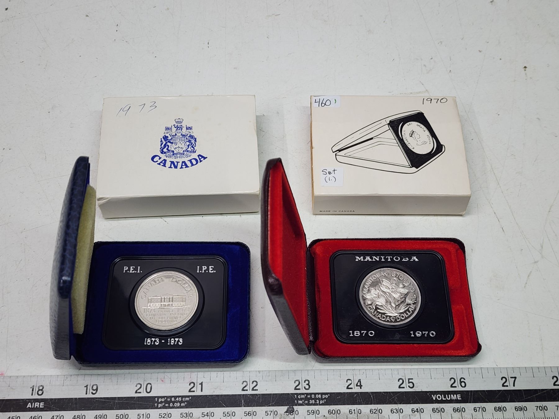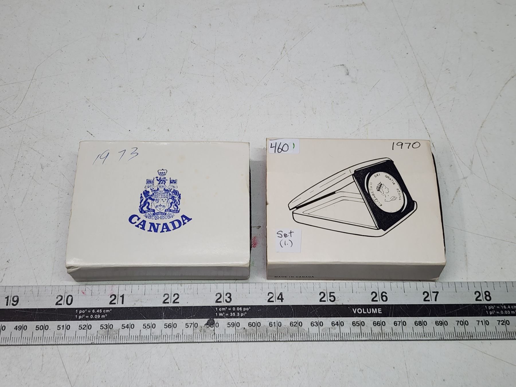 Pair of Canadian nickel dollars, in cases - 1970 & 1973