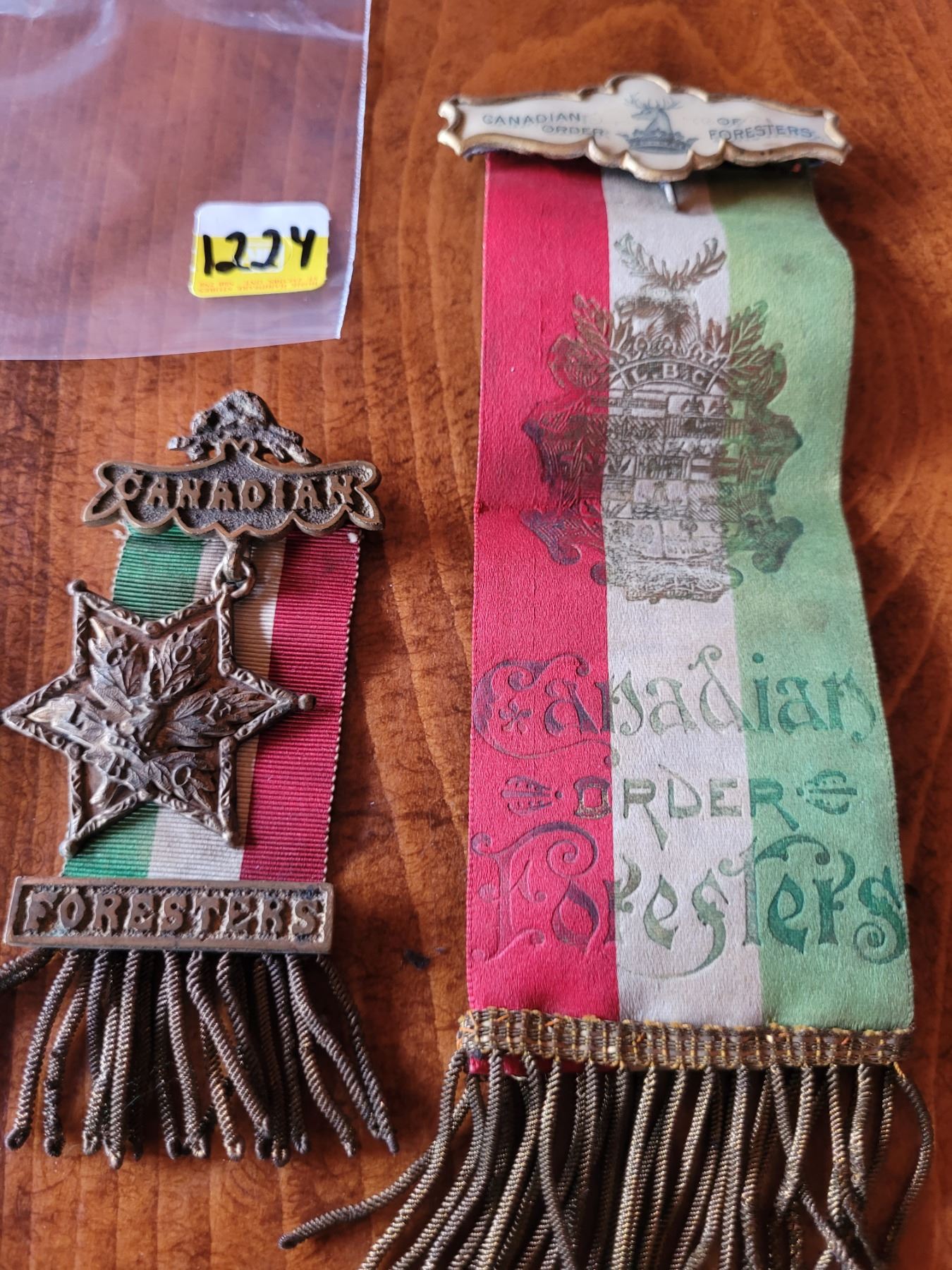 Pair of Canadian order of forestes fraternal ribbons over 100 years old excellent condition
