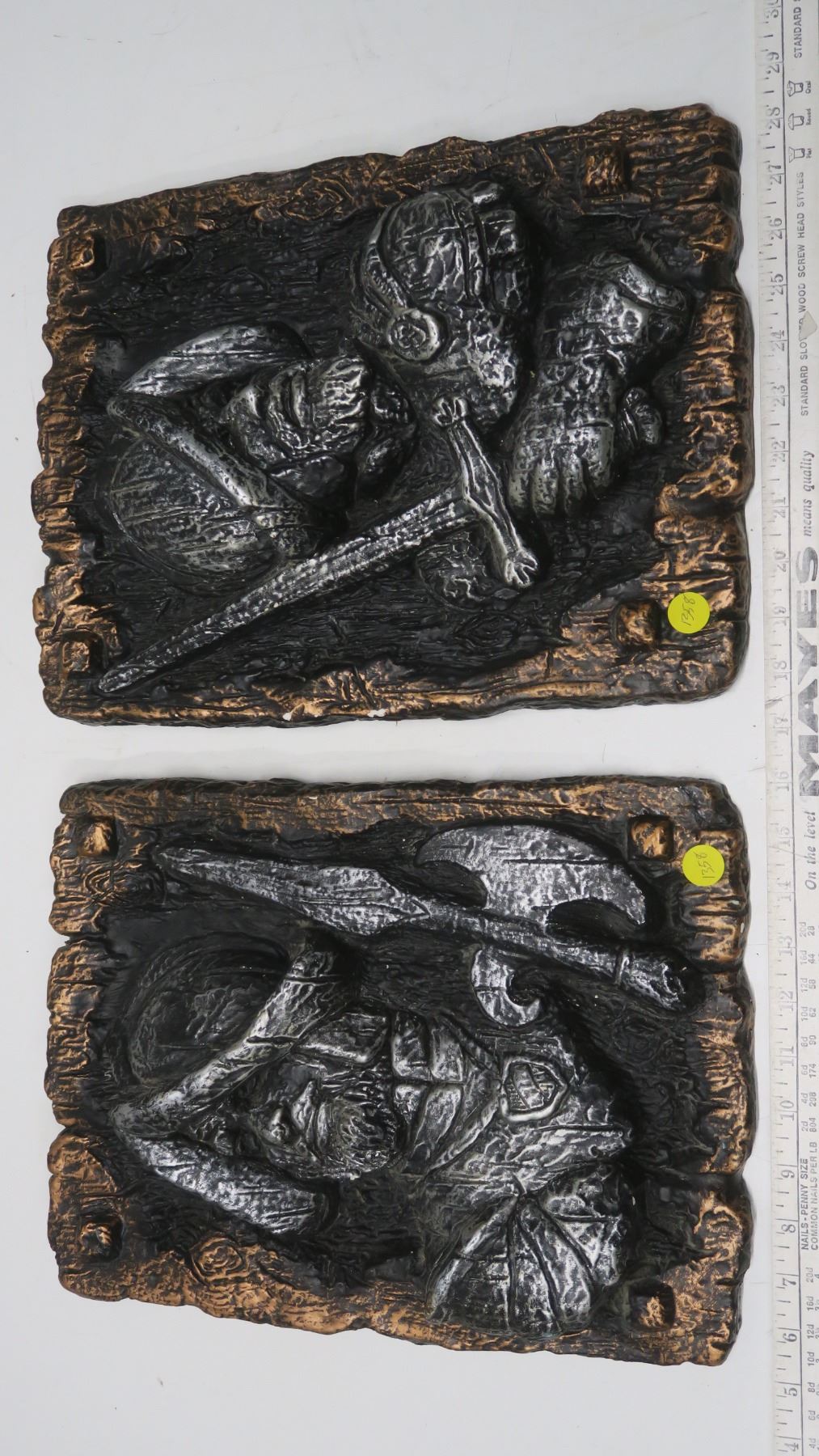 Pair of Ceramic Wall Hanging Figures W/ Halberd and Sword