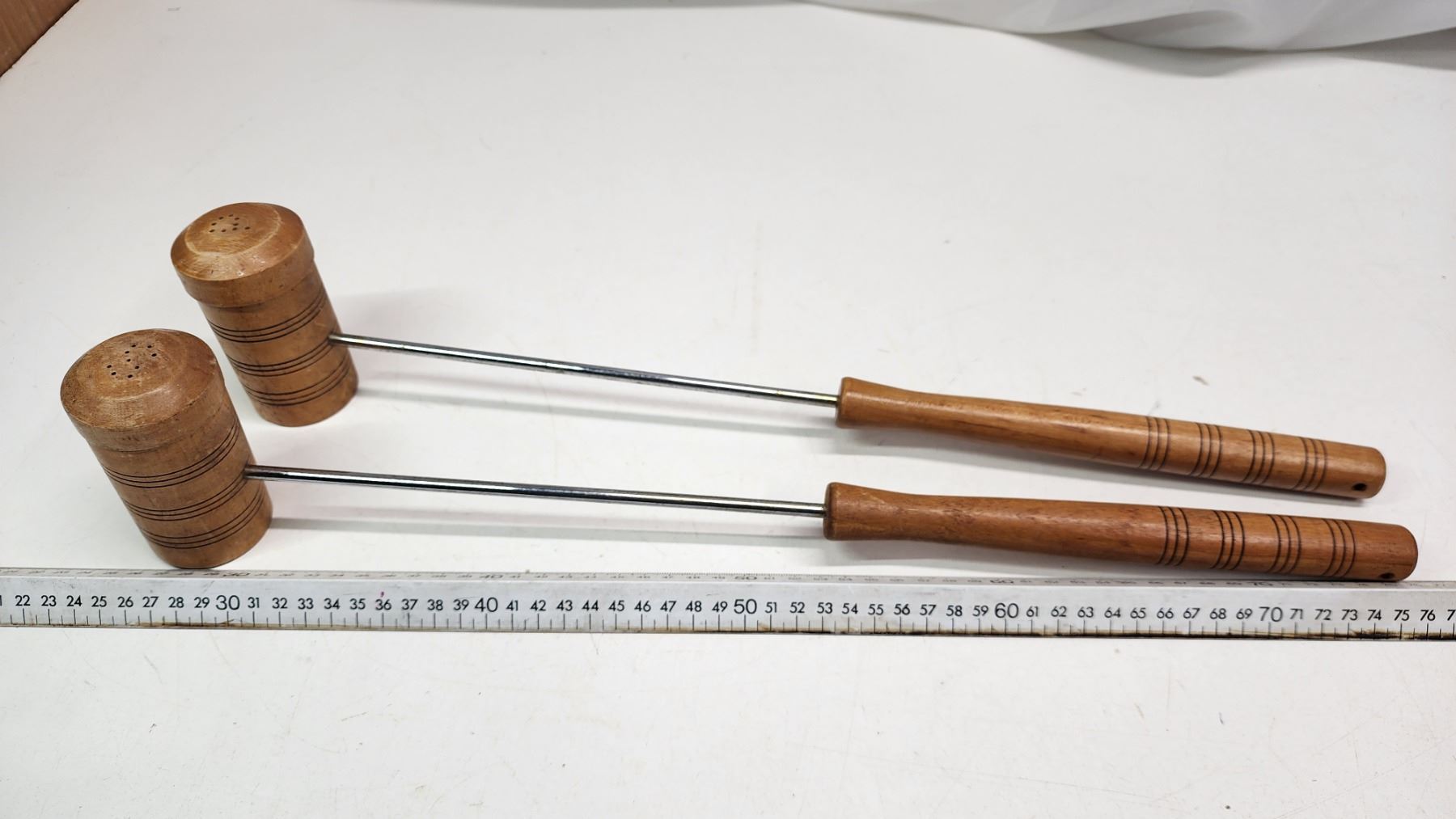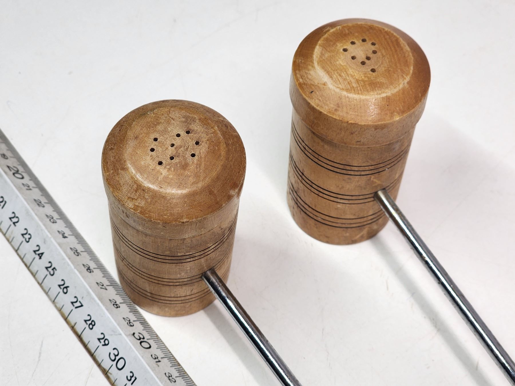 Pair of Croquet mallet, salt and pepper shakers
