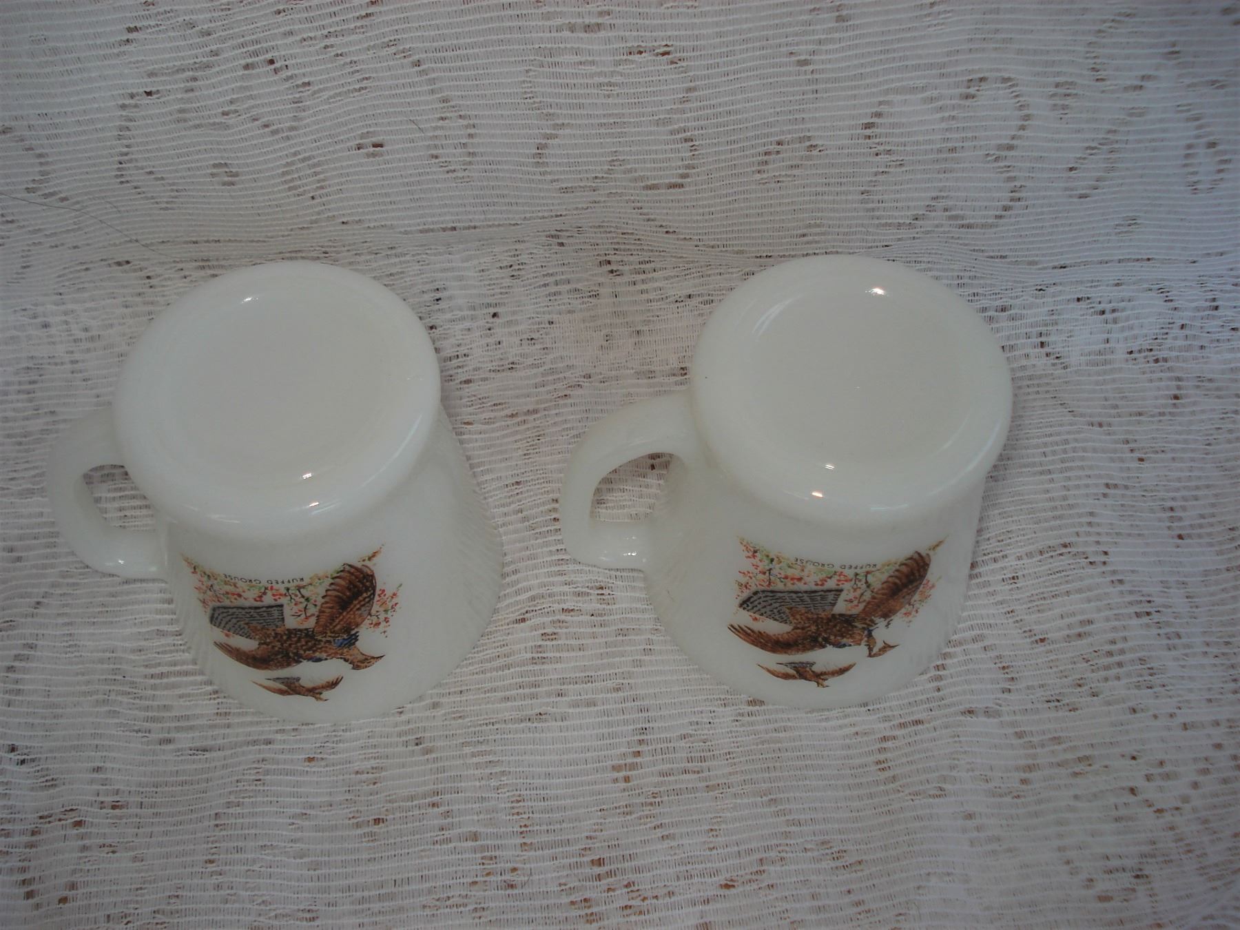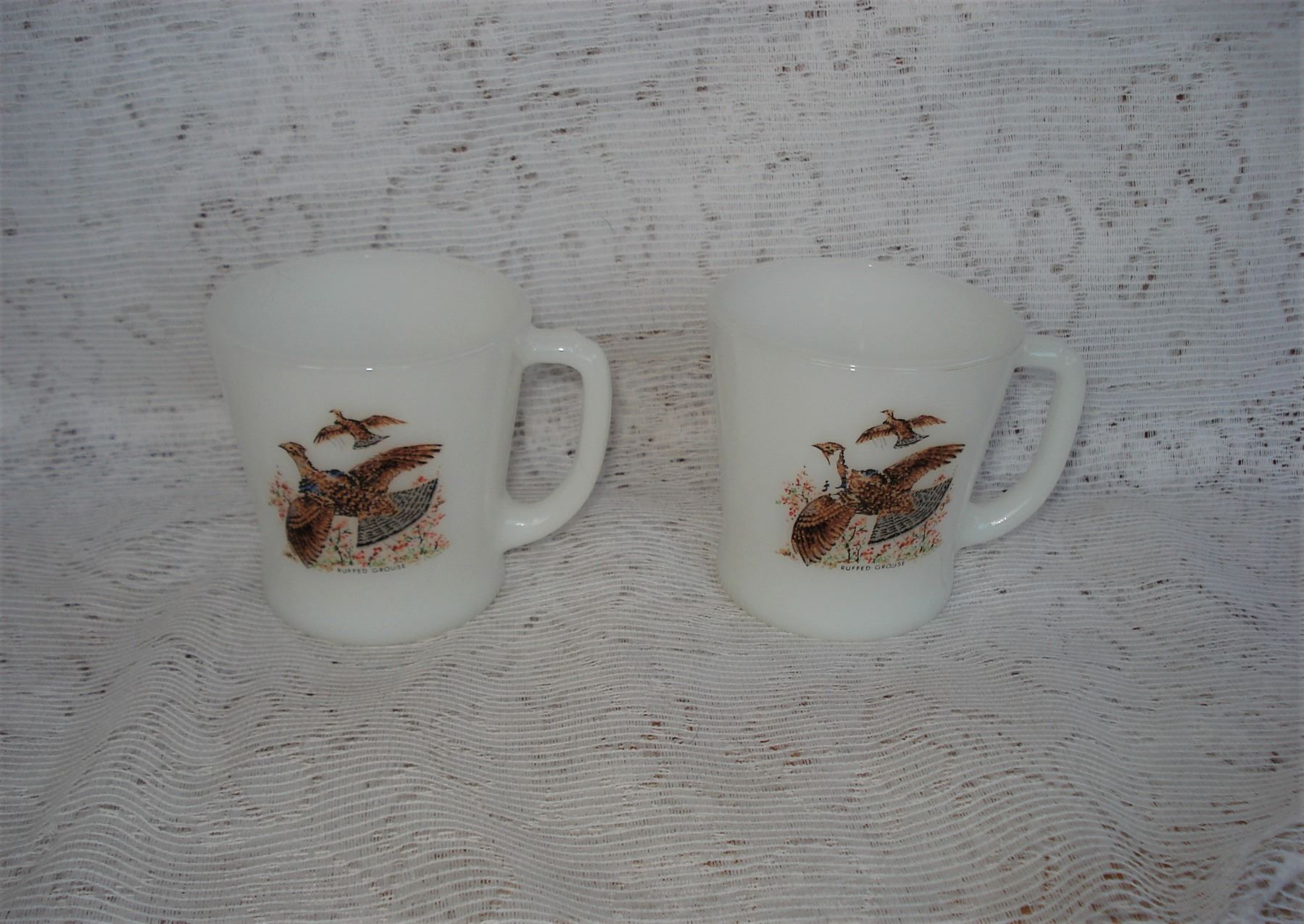 Pair of Fire King Ruffled Grouse Coffee Mugs
