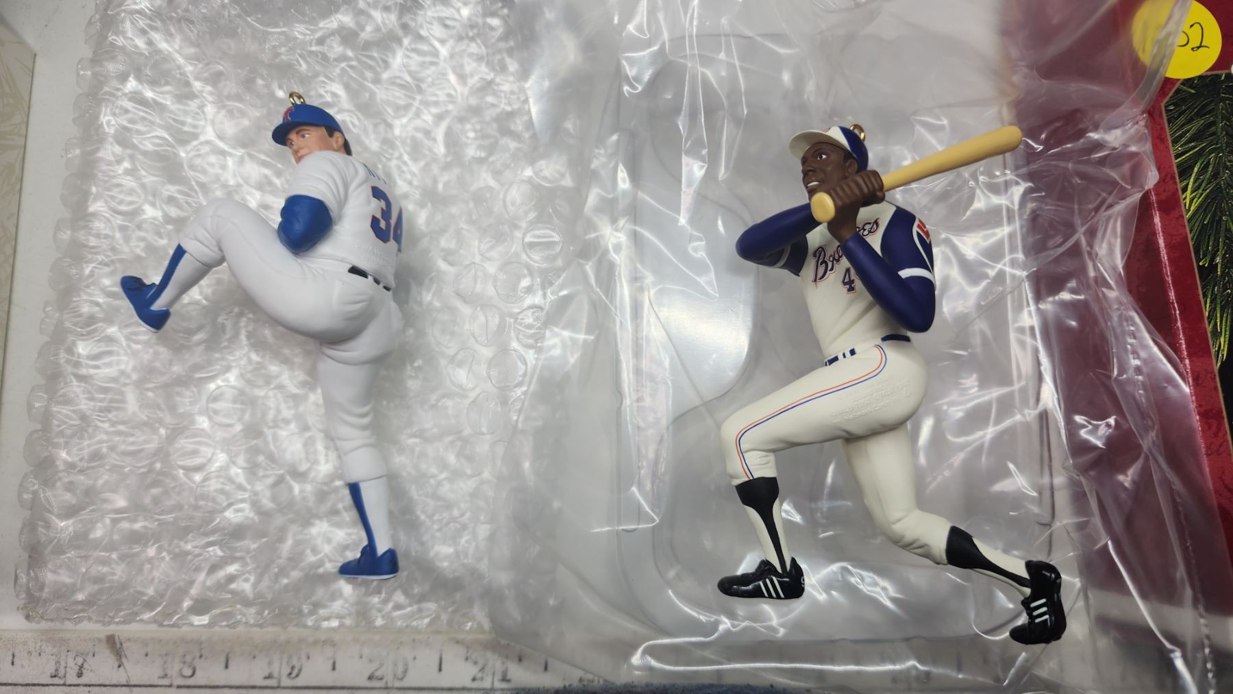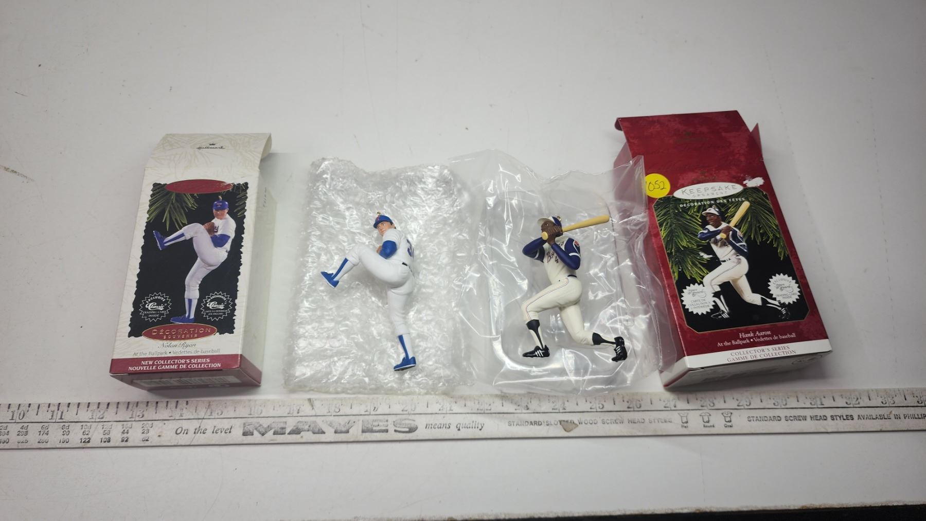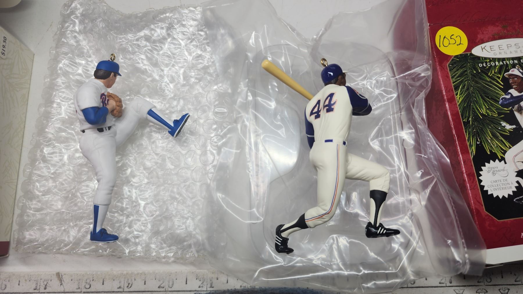 Pair of Hallmark ornaments - Hank Aaron #2 & Nolan Ryan #1