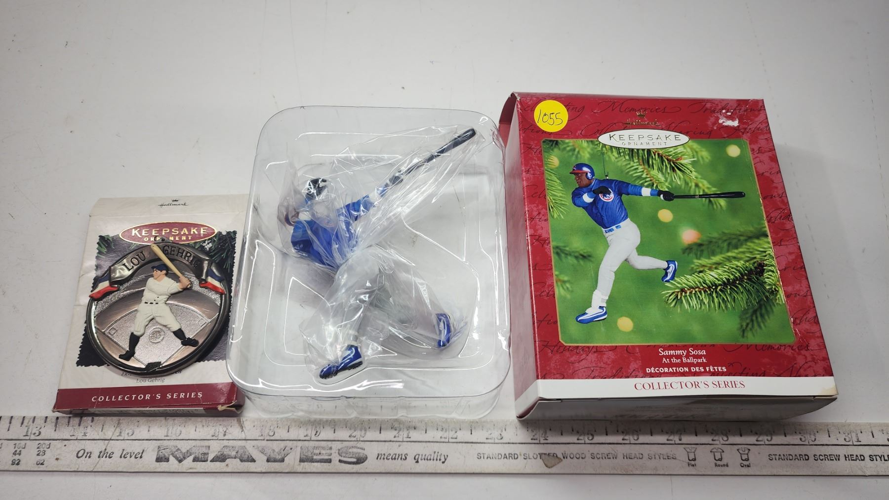 Pair of Hallmark ornaments - Sammy Sosa #6 & Lou Gehrig #2