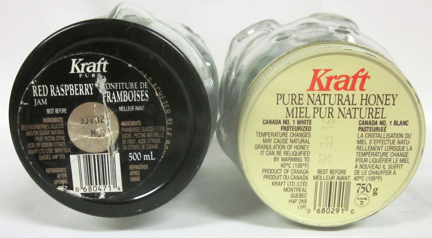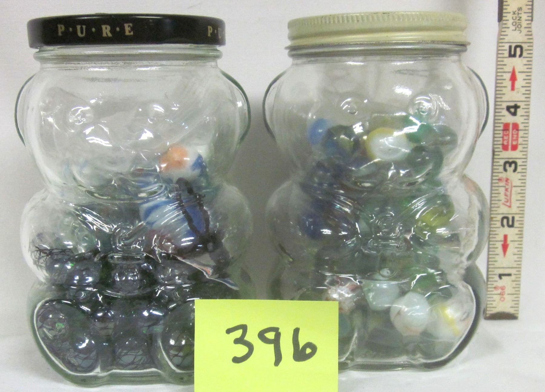 Pair of Kraft Vintage 5½" Glass Bear Jars w/ Lids - Full of Marbles