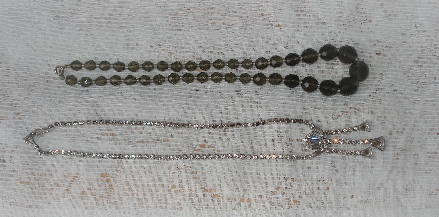 Pair of Necklaces Rhinestone and smokey grey glass bead vintage