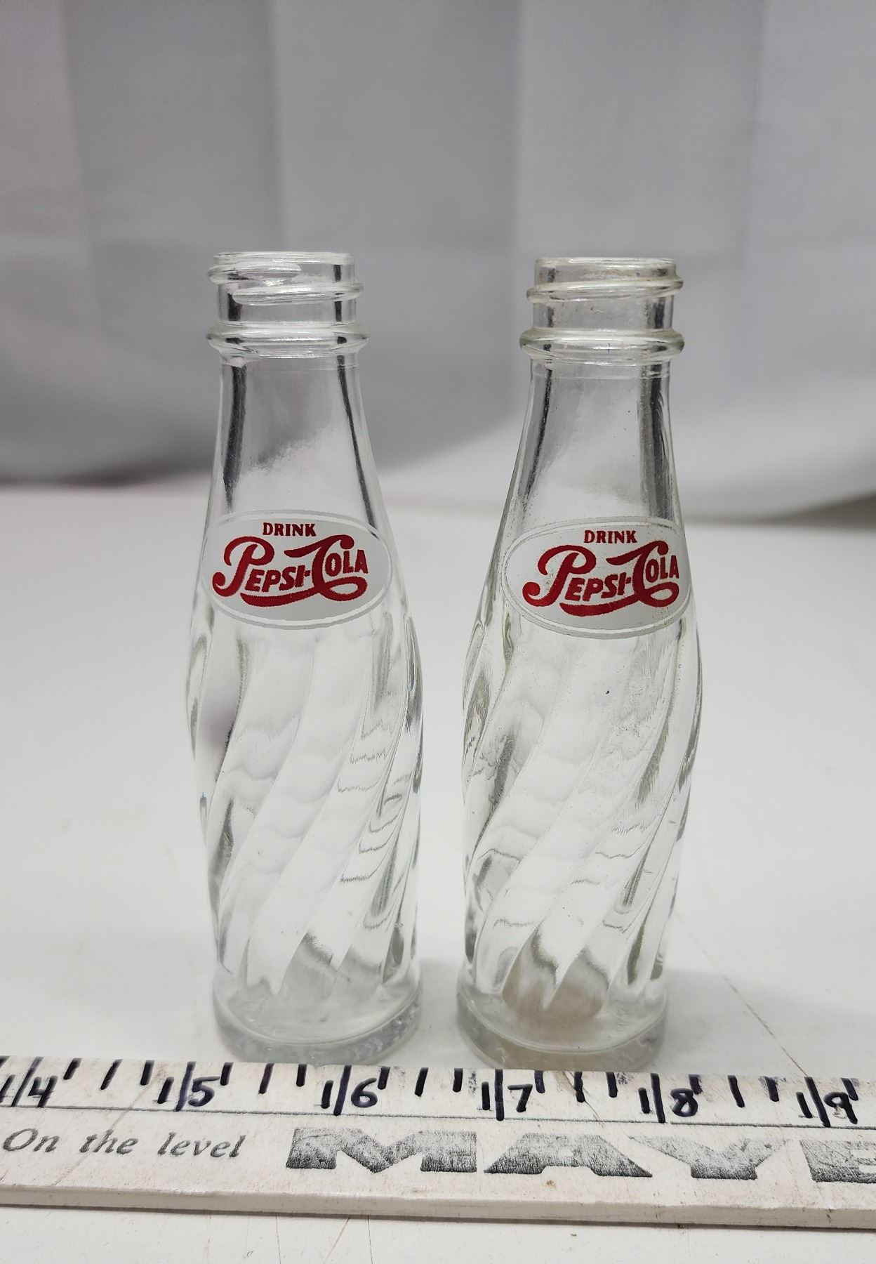Pair of Pepsi-Cola salt and pepper shaker bottles - no tops