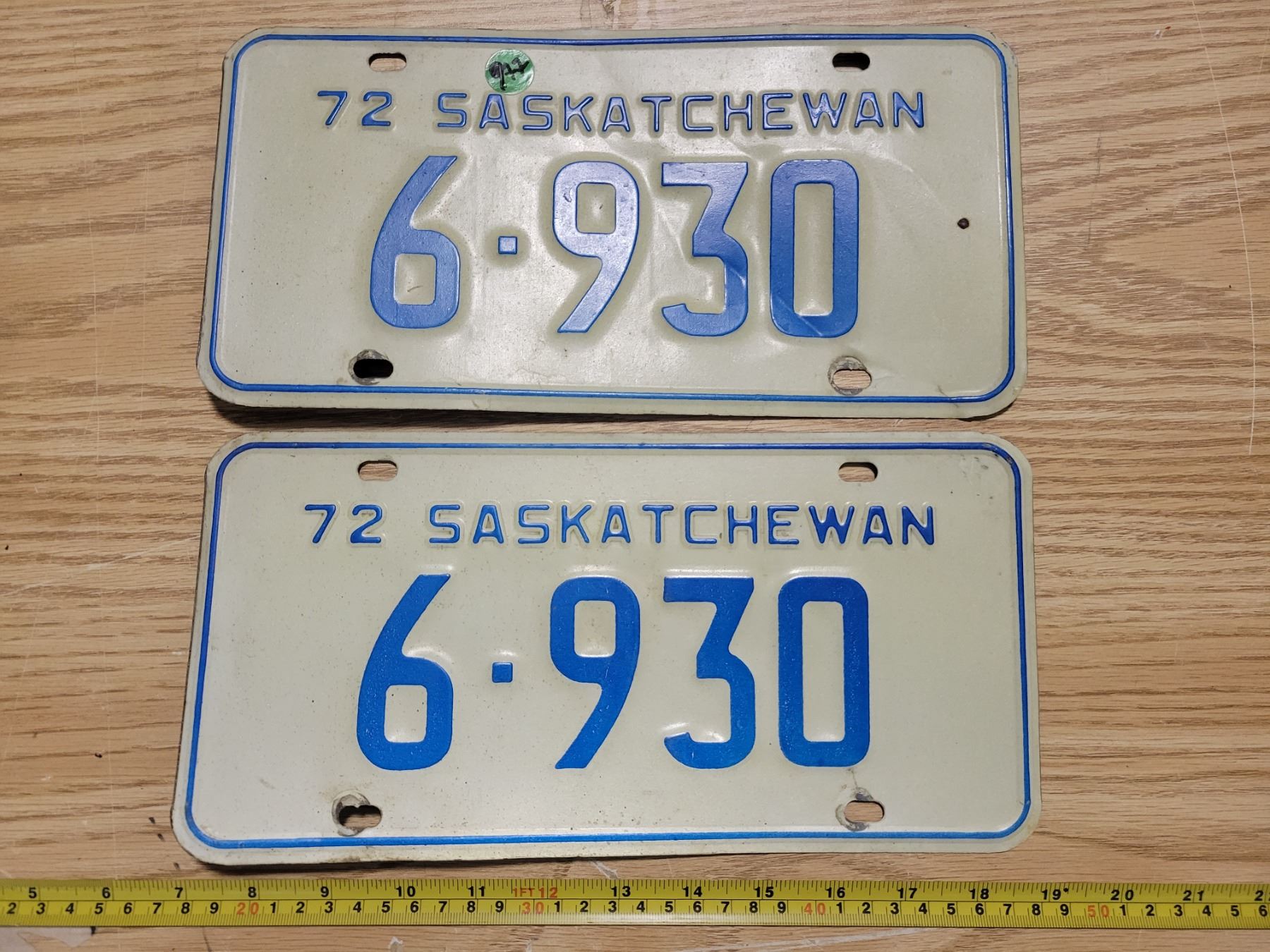 Pair of Saskatchewan 1972 license plates
