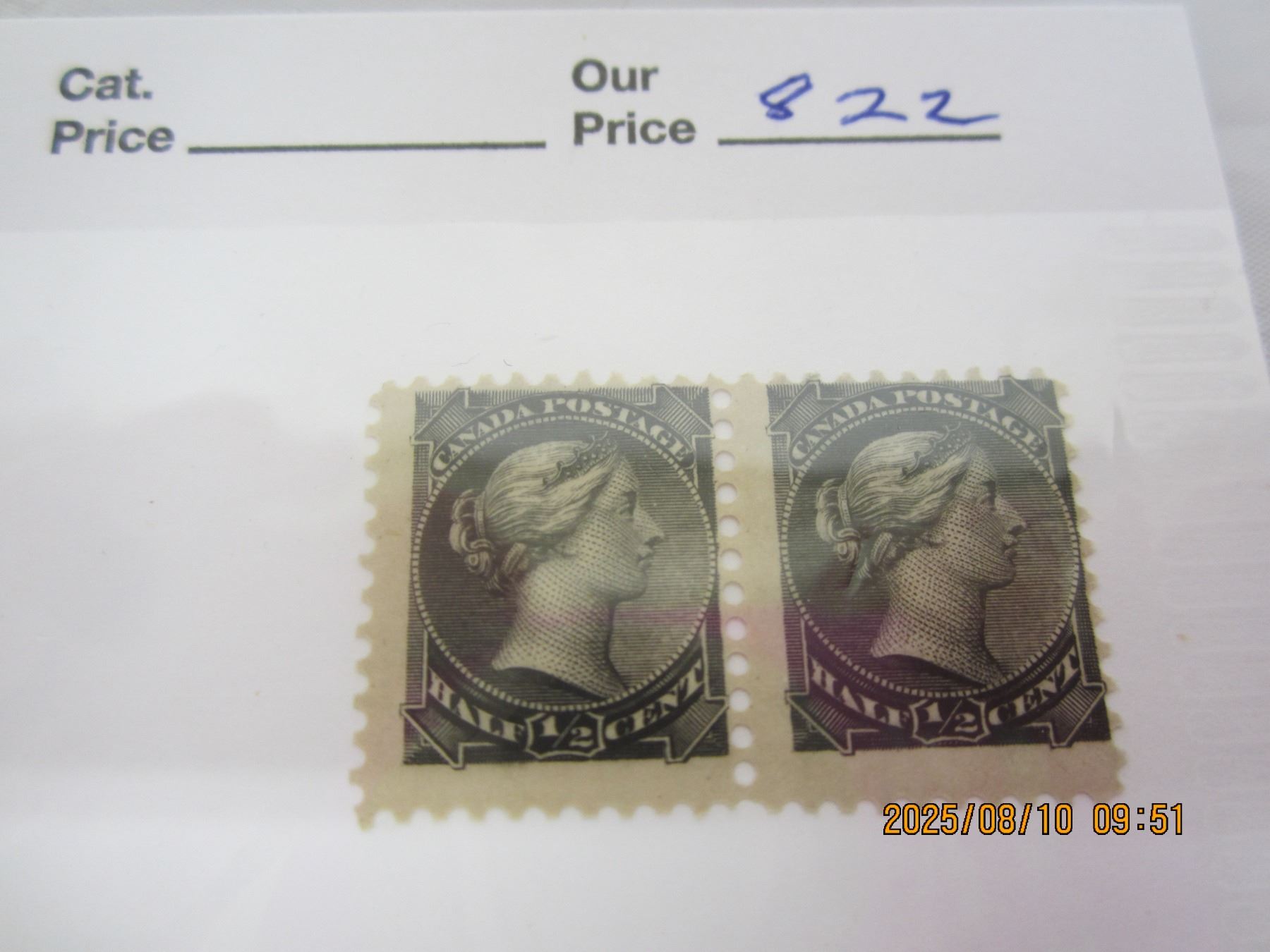 Pair of Small Queen Victoria ½ Cent OG ,LH Never Used