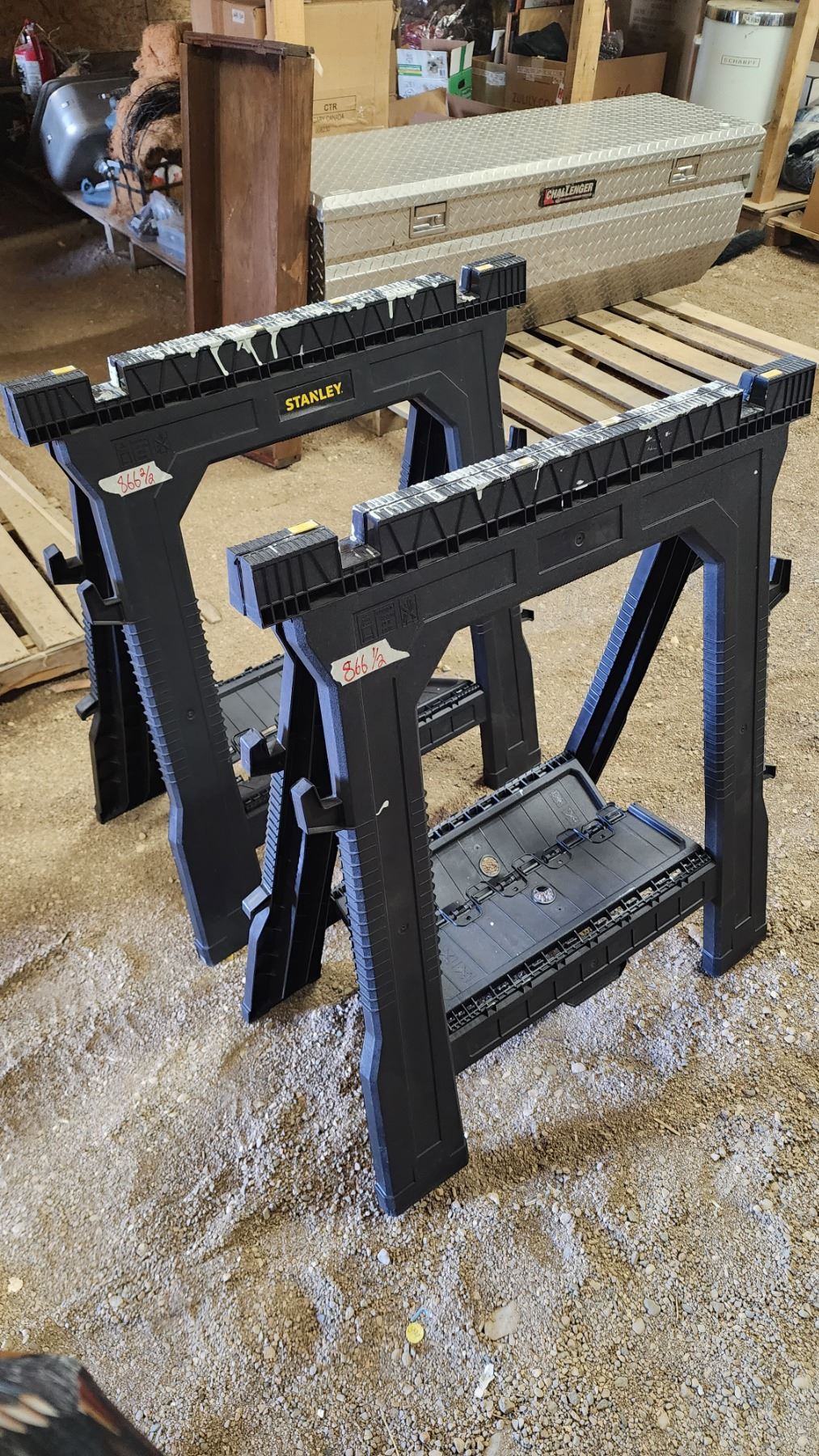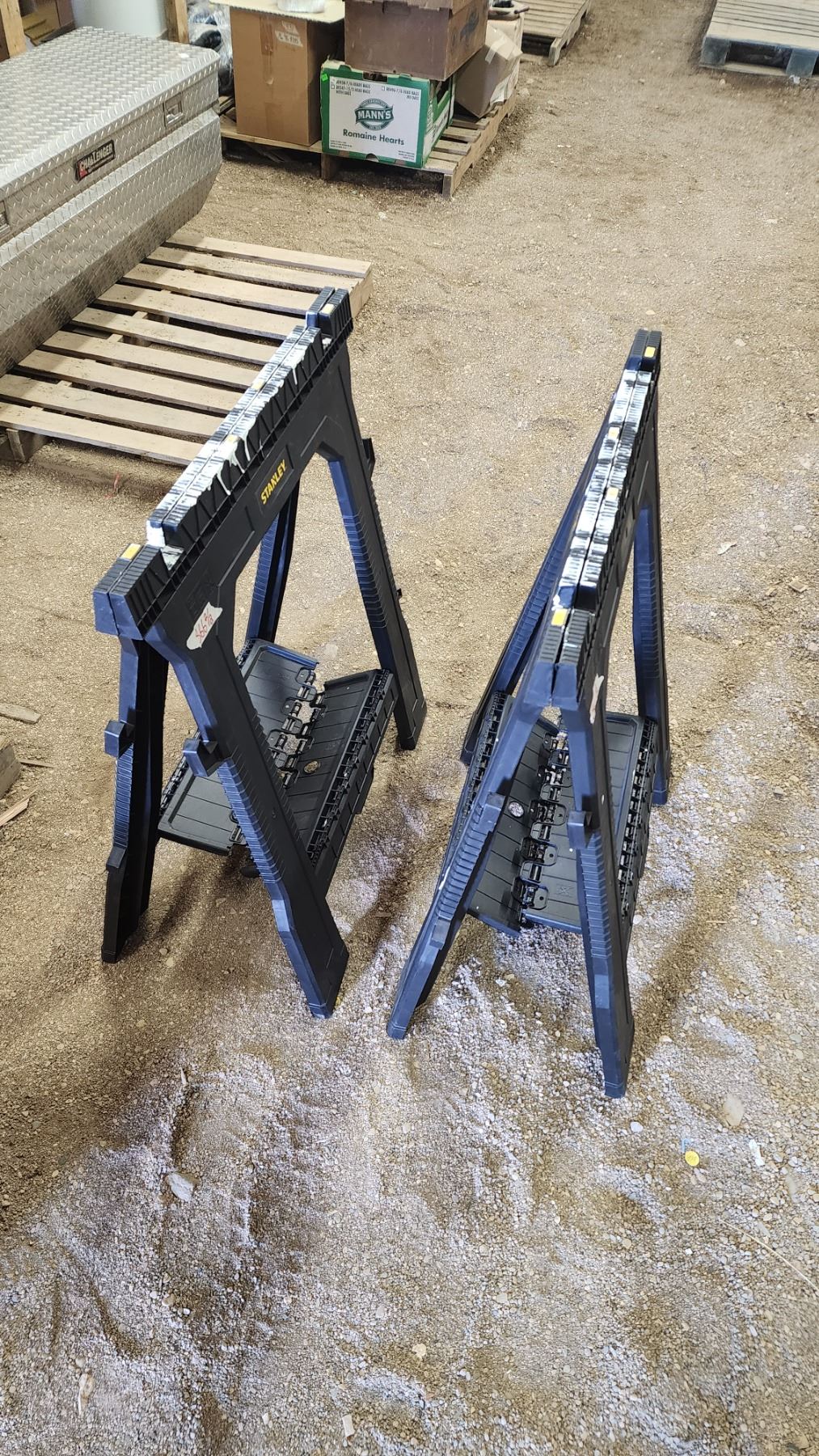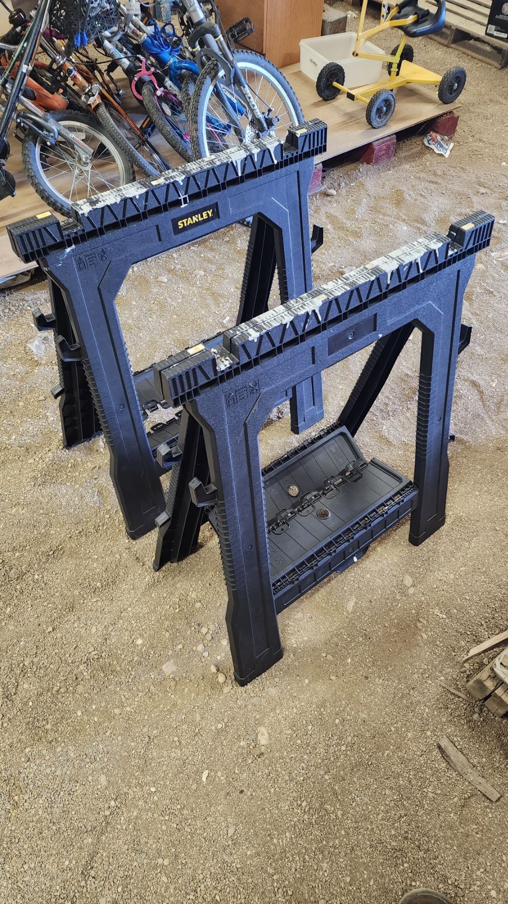 Pair of Stanley, folding plastic saw horses