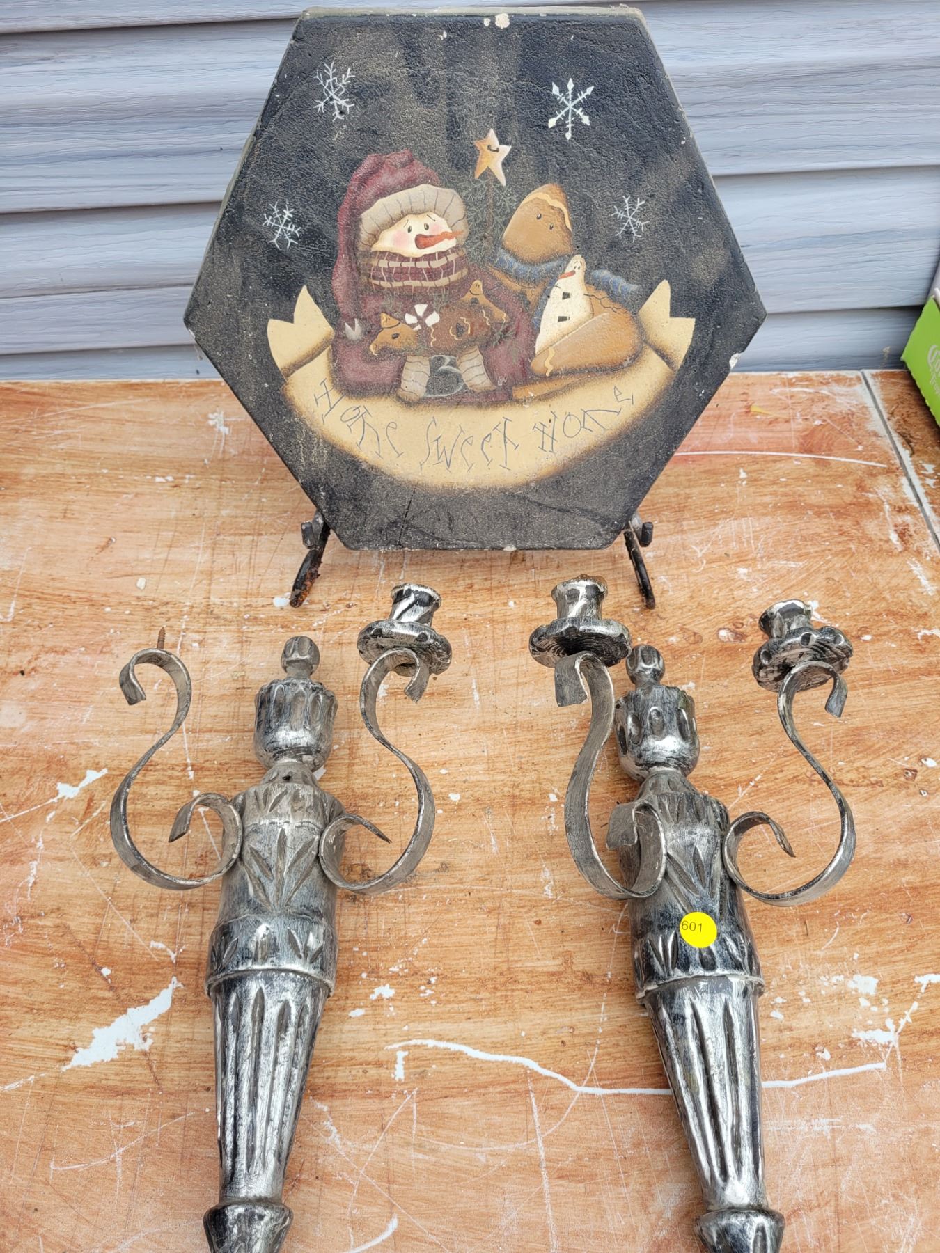 Pair of Wall Sconce Candle Sticks & Home Sweet Home Stone