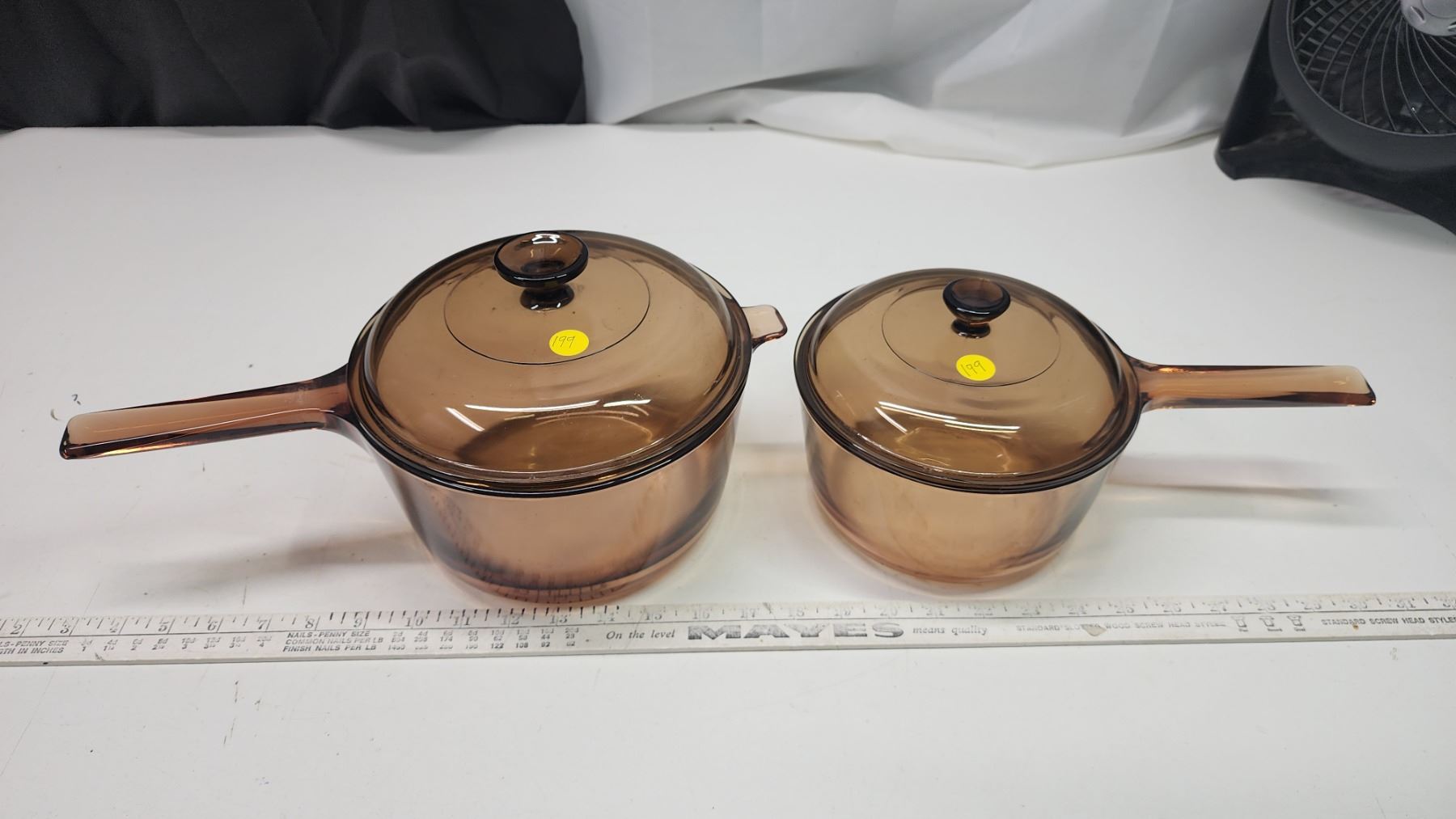 Pair of brown glass "Pyrex/Corning" cooking pots