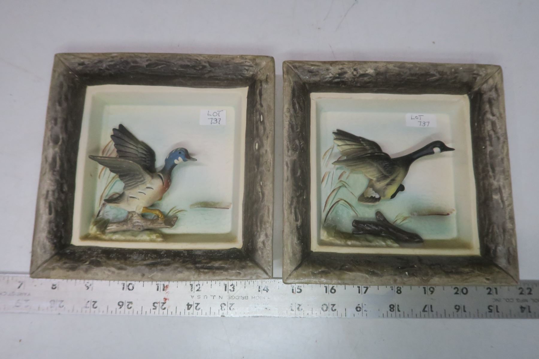 Pair of ceramic wall pictures 6 1/2 x 6 1/2 each Wood Duck