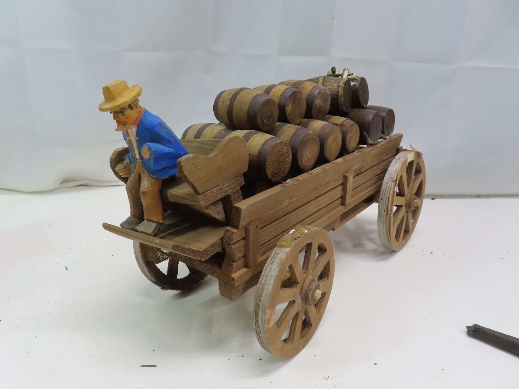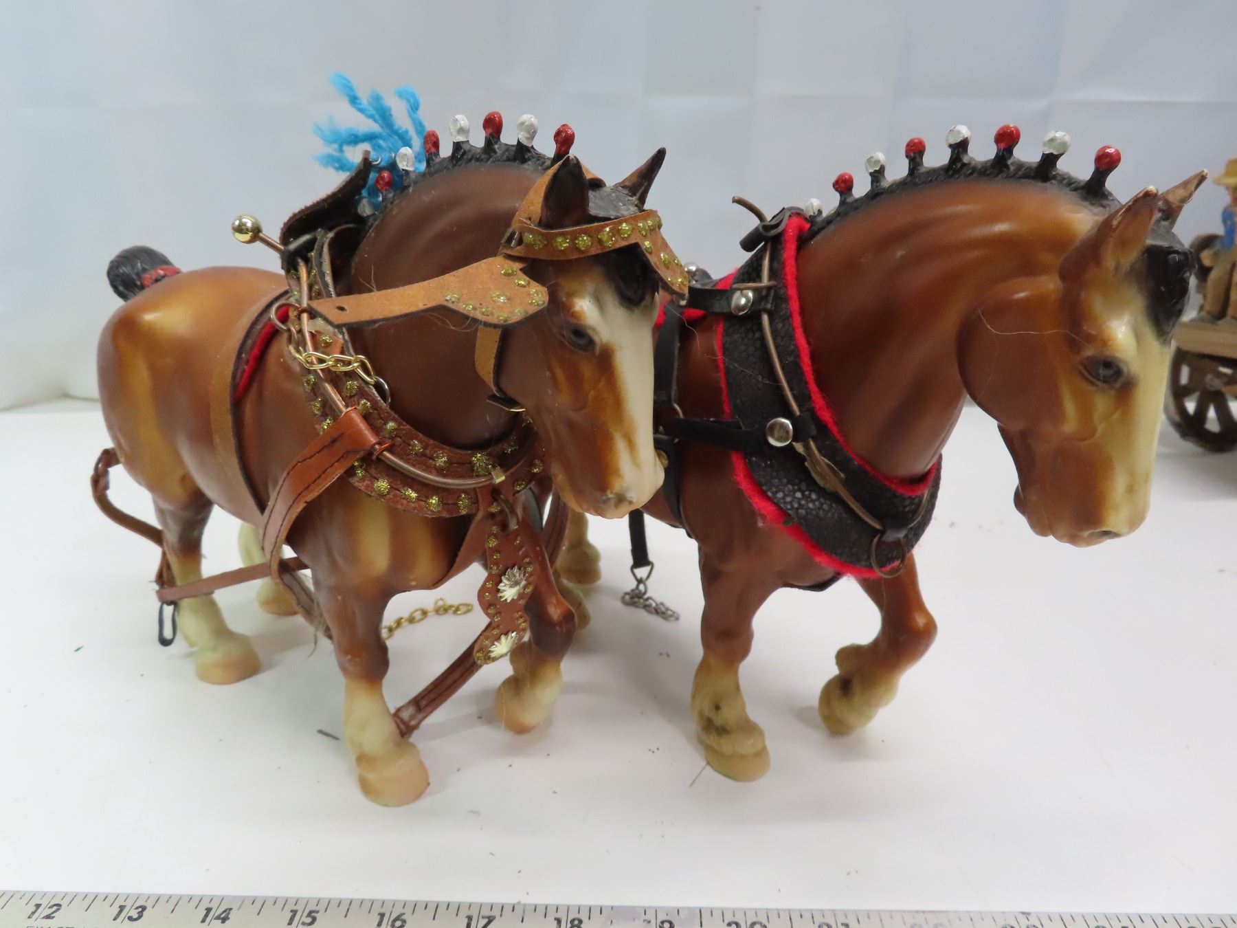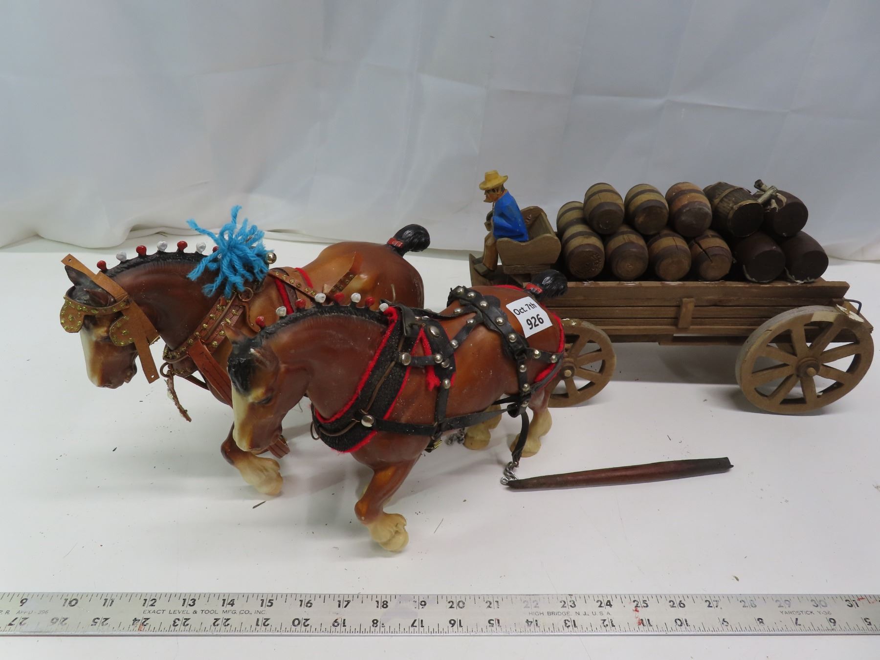 Pair of clydesdales w/wooden wagon 14" x 7.5"